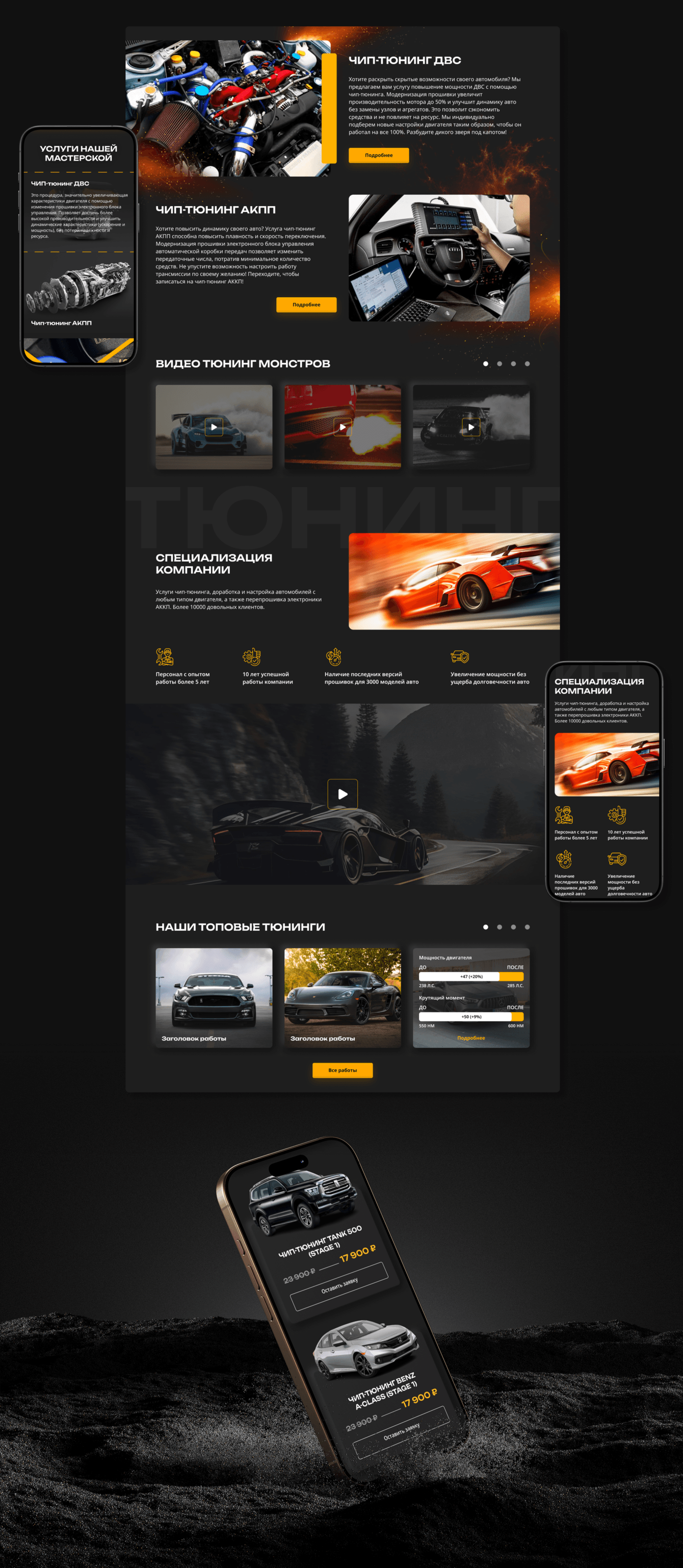 Когда основная часть сайта была готова, мы приступили к наполнению и финальной настройке проекта. Подготовили контент, который помогает раскрыть услуги сервиса, объясняет преимущества чип-тюнинга и делает информацию доступной и понятной для посетителя.