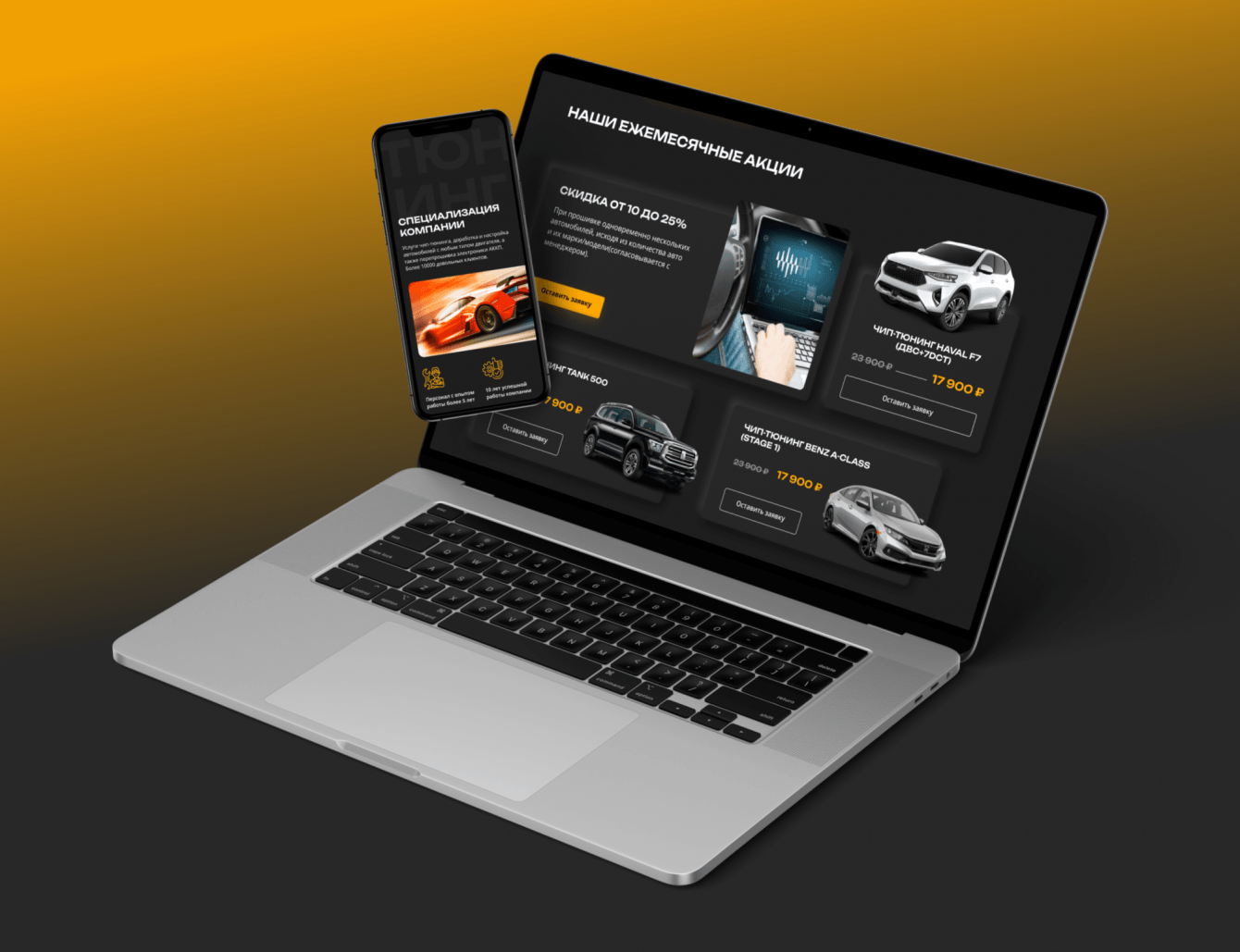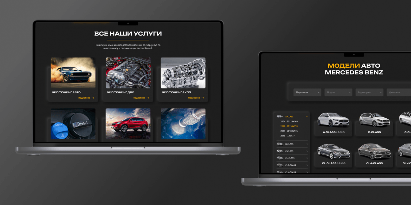 Разработка сайта для сервиса чип тюнинга стала инструментом для доступа к полной информации об услугах компании, о способах и результате улучшения характеристик автомобилей.