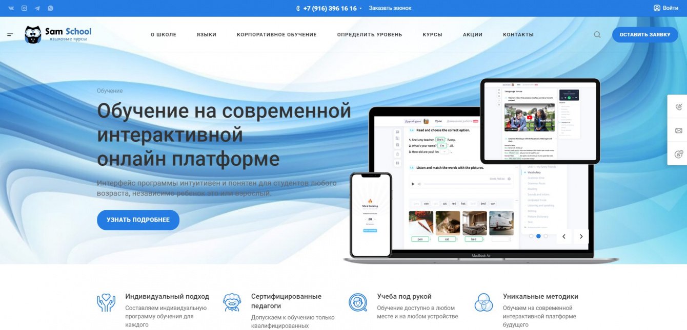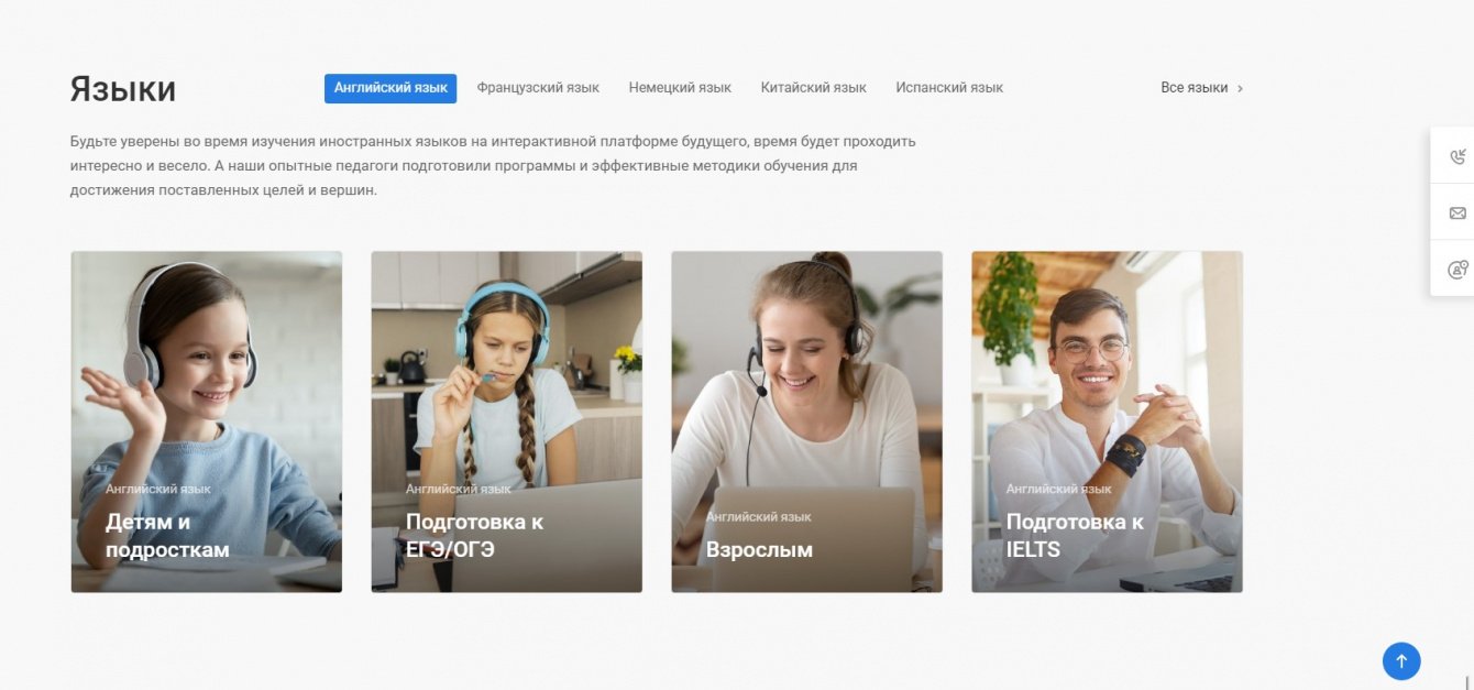 Создание сайта для онлайн-школы иностранных языков с возможностью записи на выбранные курсы. При разработке сайта основным требованием была простота, лаконичность и быстрота работы сайта.