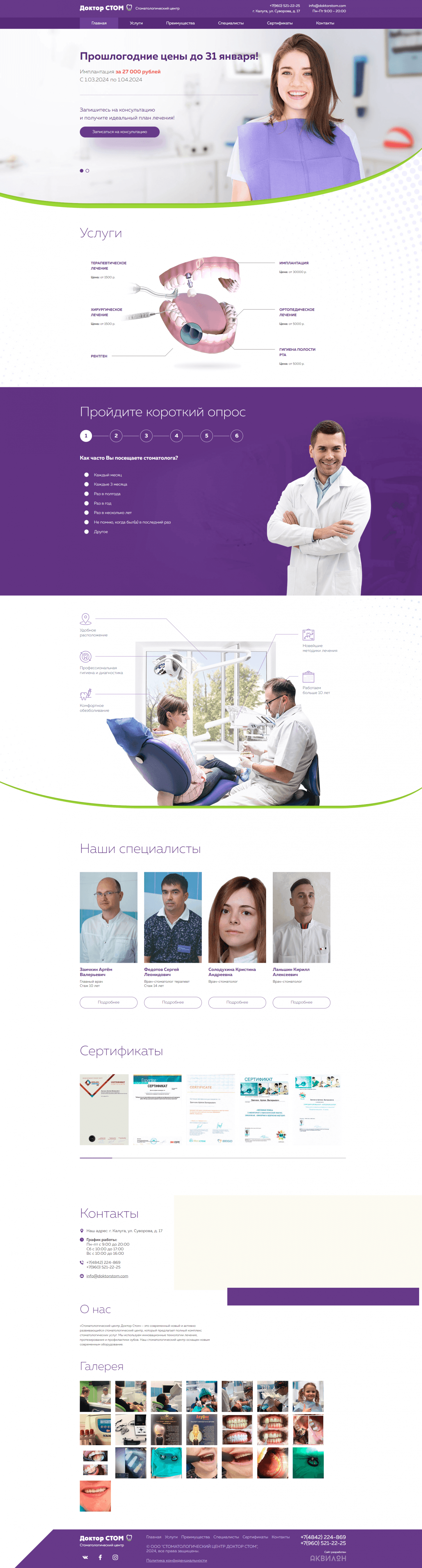 - Услуги и специализация: Описали на сайте все услуги, которые предоставляются в стоматологическом центре, а также специализацию в определенных областях стоматологии.