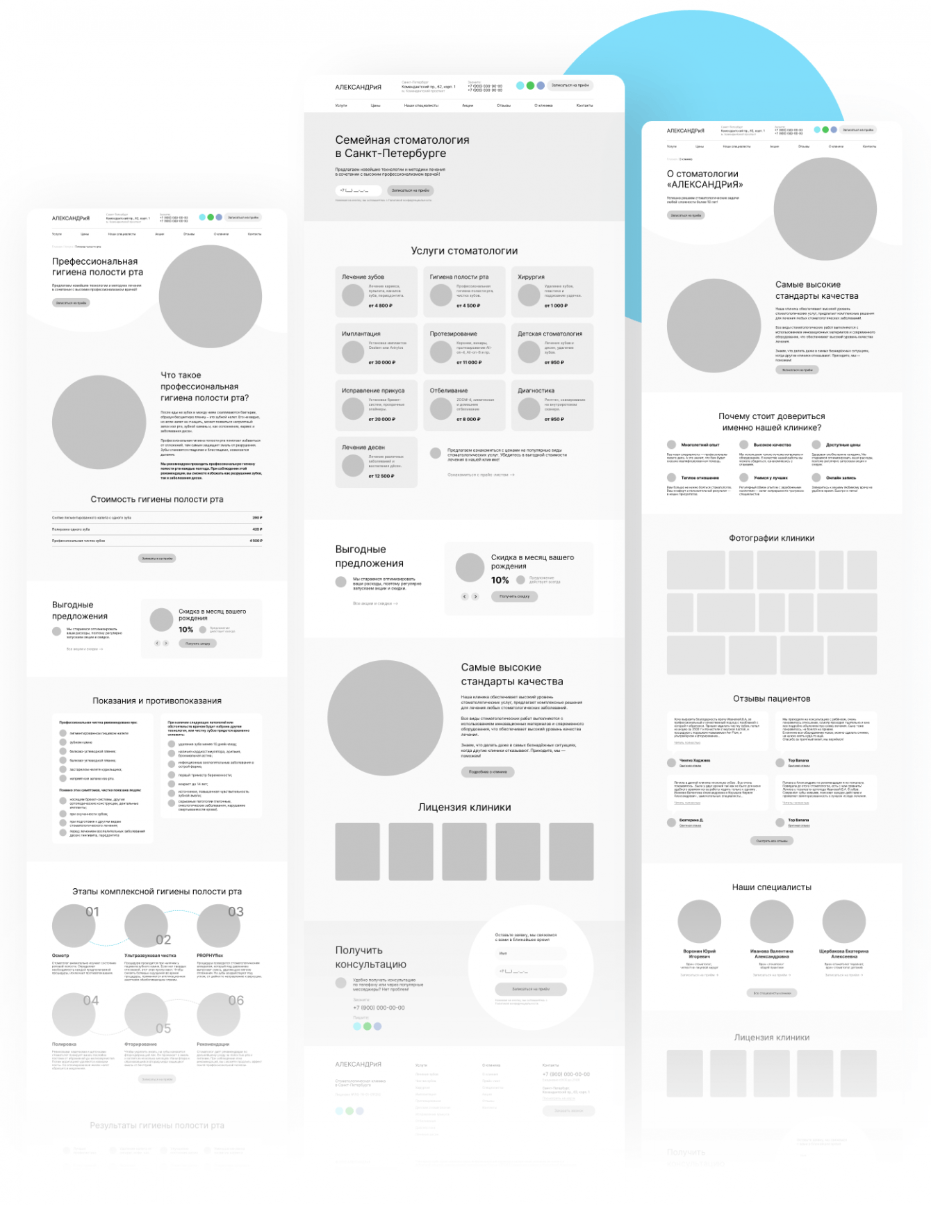 Дизайн сайта для стоматологической клиники должен передавать серьезность, надежность и профессионализм клиники. В дизайне использовали чистые и плавные линии, сдержанные тонировки.