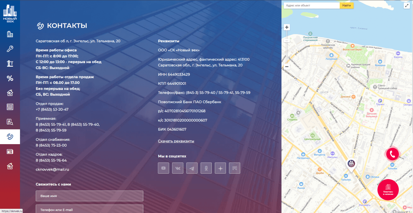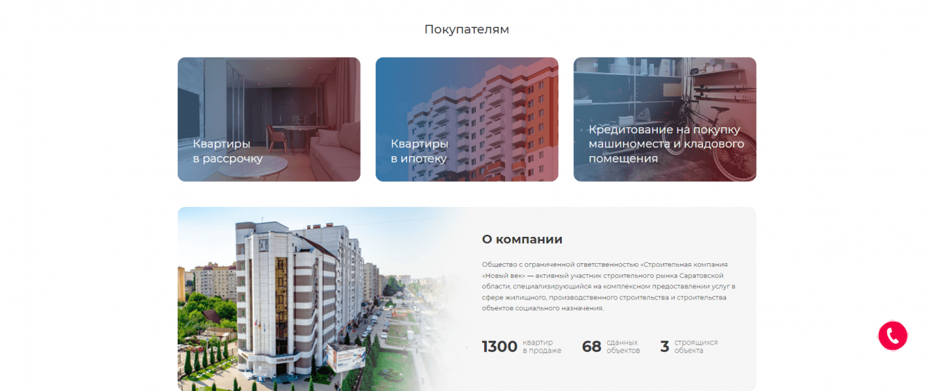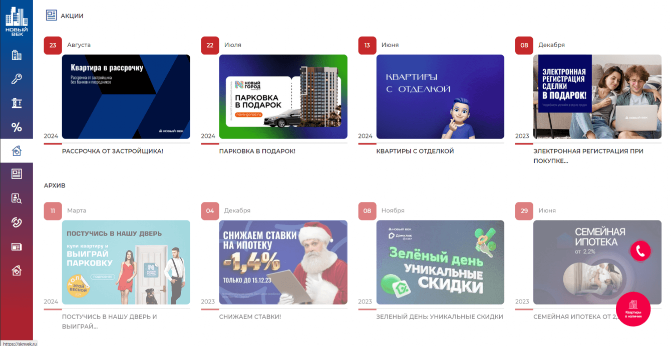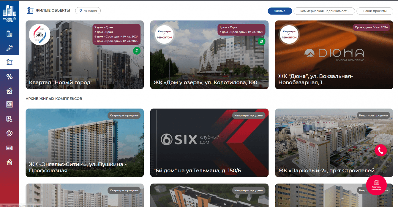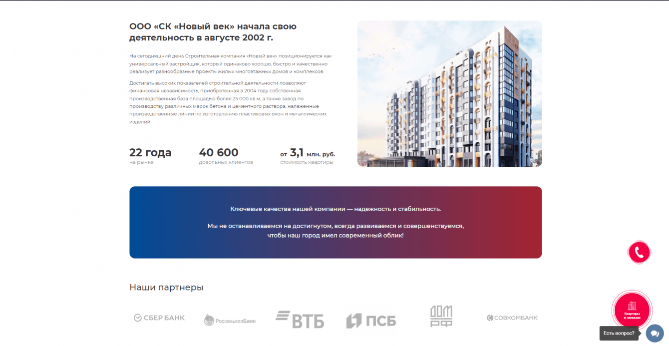 Строительная компания «Новый Век» обратилась к нам с просьбой разработать корпоративный сайт, на котором можно было бы показывать квартиры для продажи. Перед нами были поставлены следующие задачи: