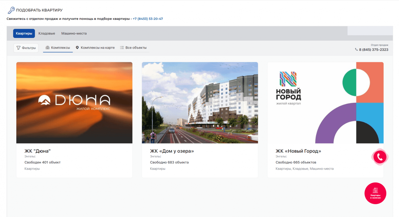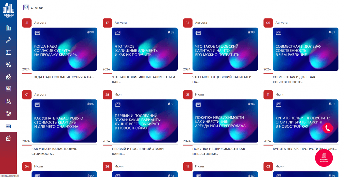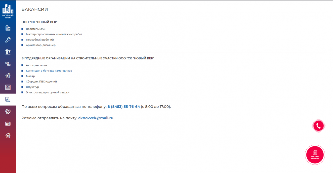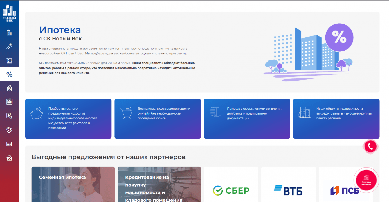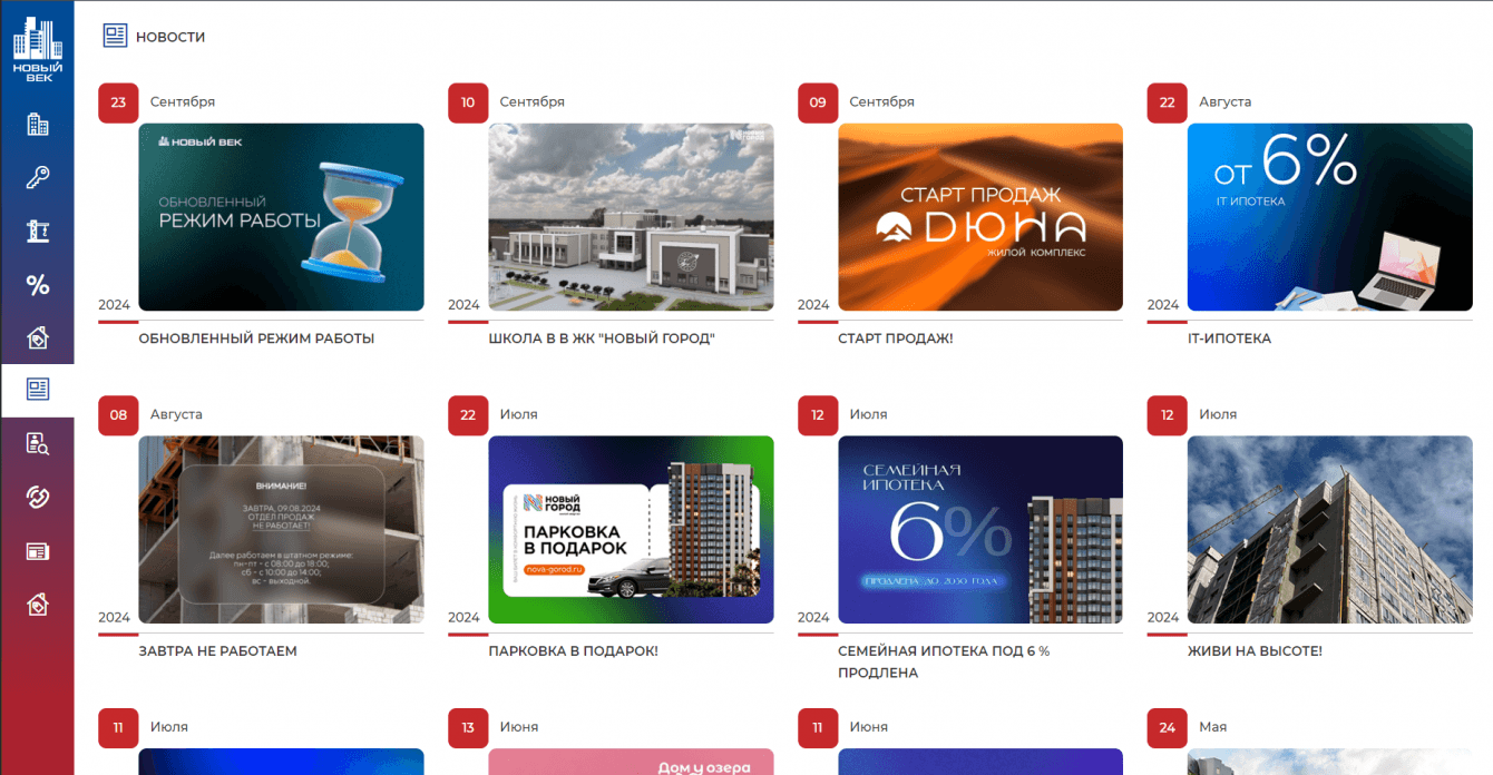 Строительная компания «Новый Век» обратилась к нам с просьбой разработать корпоративный сайт, на котором можно было бы показывать квартиры для продажи. Перед нами были поставлены следующие задачи: