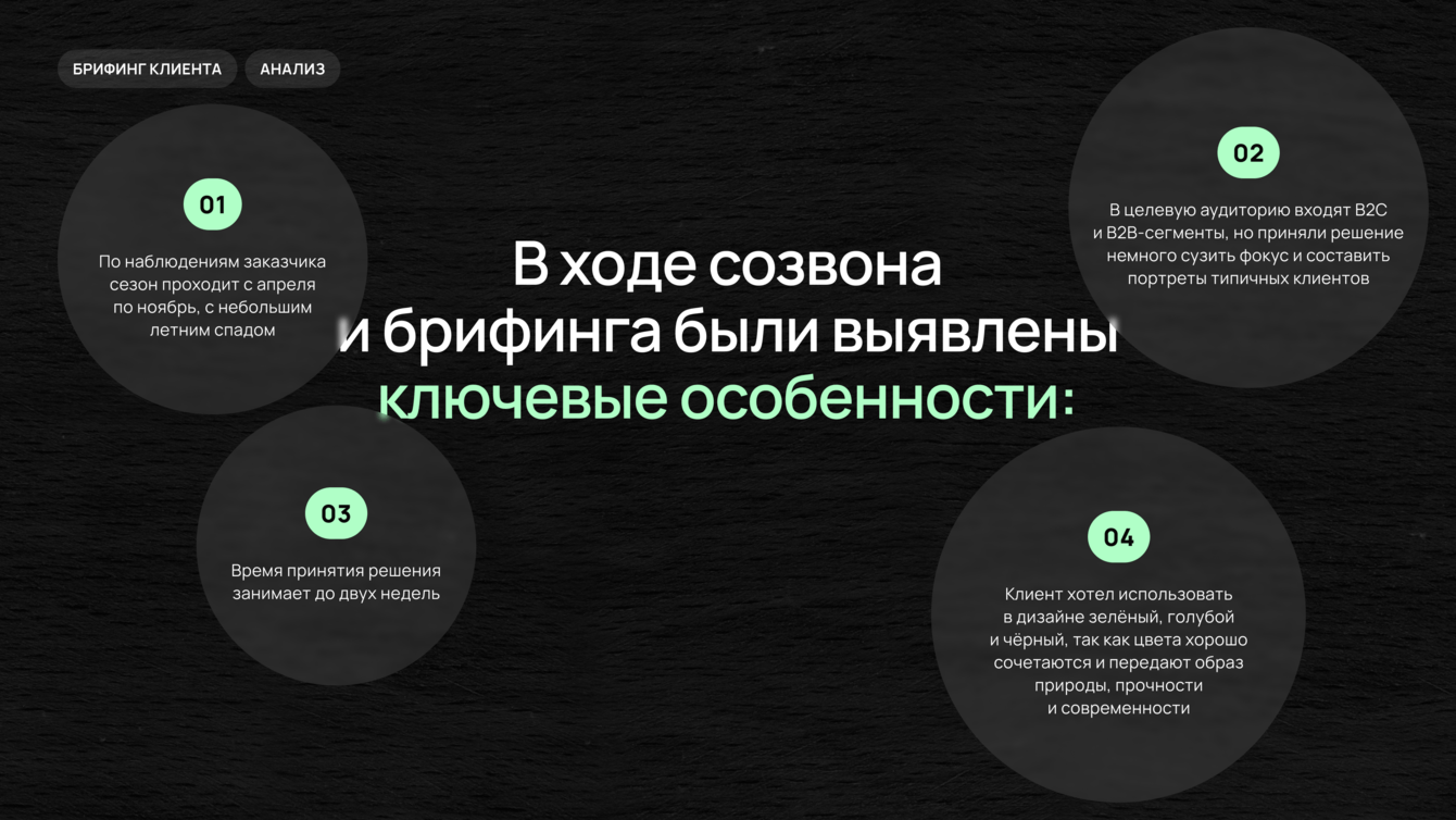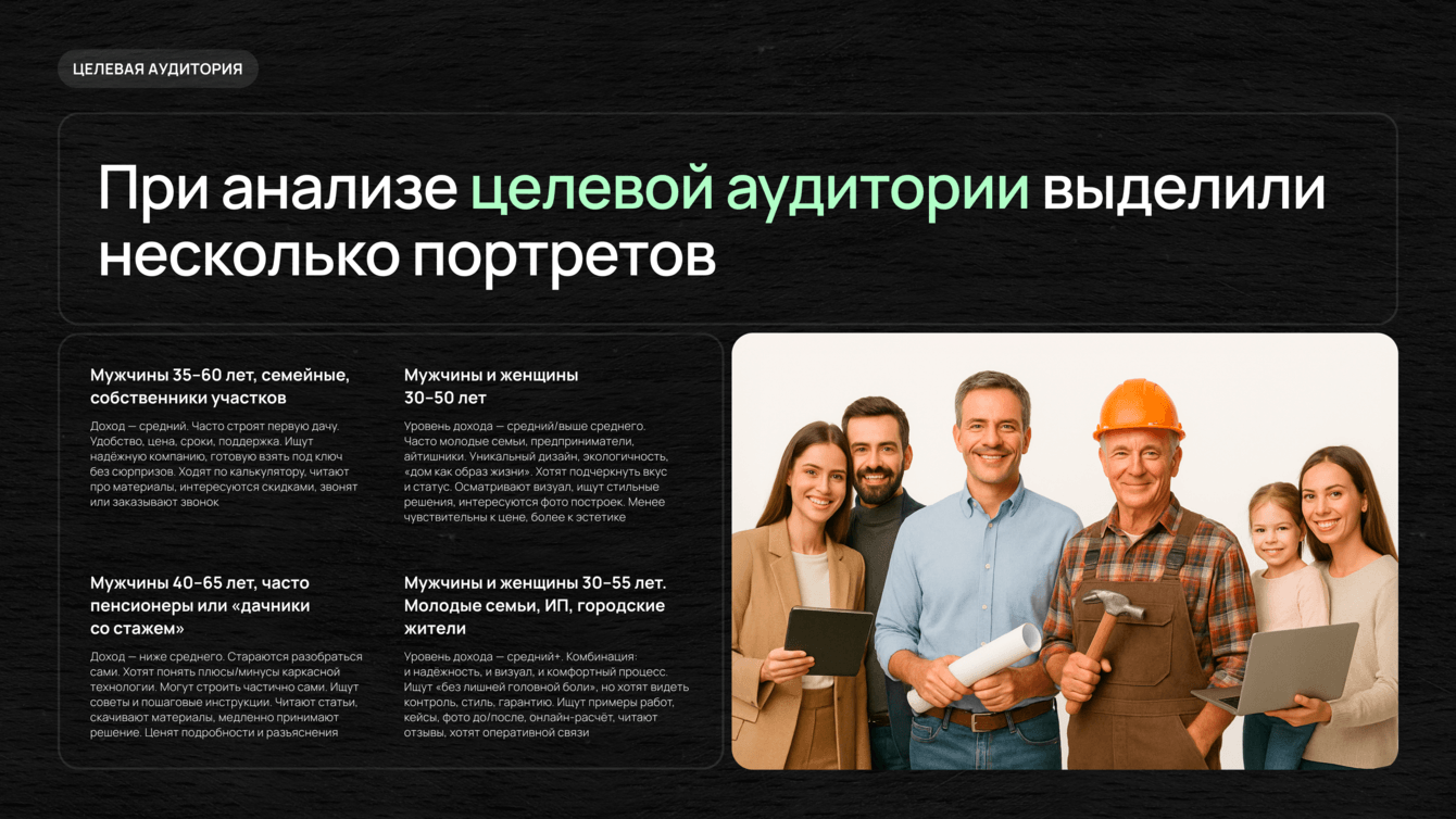 При разработке сайта мы в первую очередь опирались на последний портрет целевой аудитории, так как он наиболее понятен как нам, так и клиенту, и с ним проще всего работать.