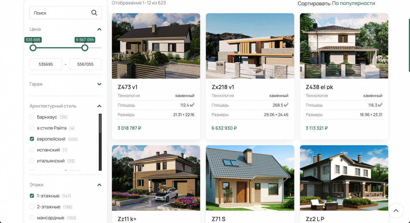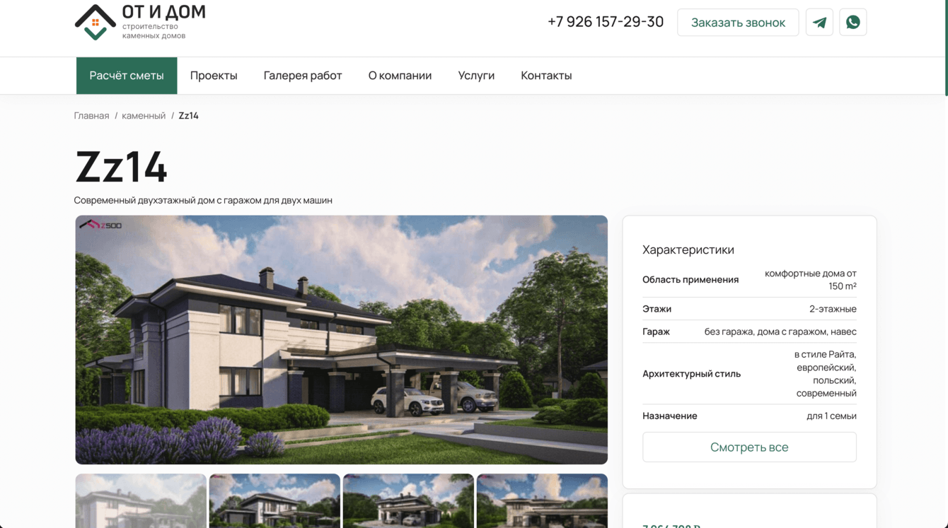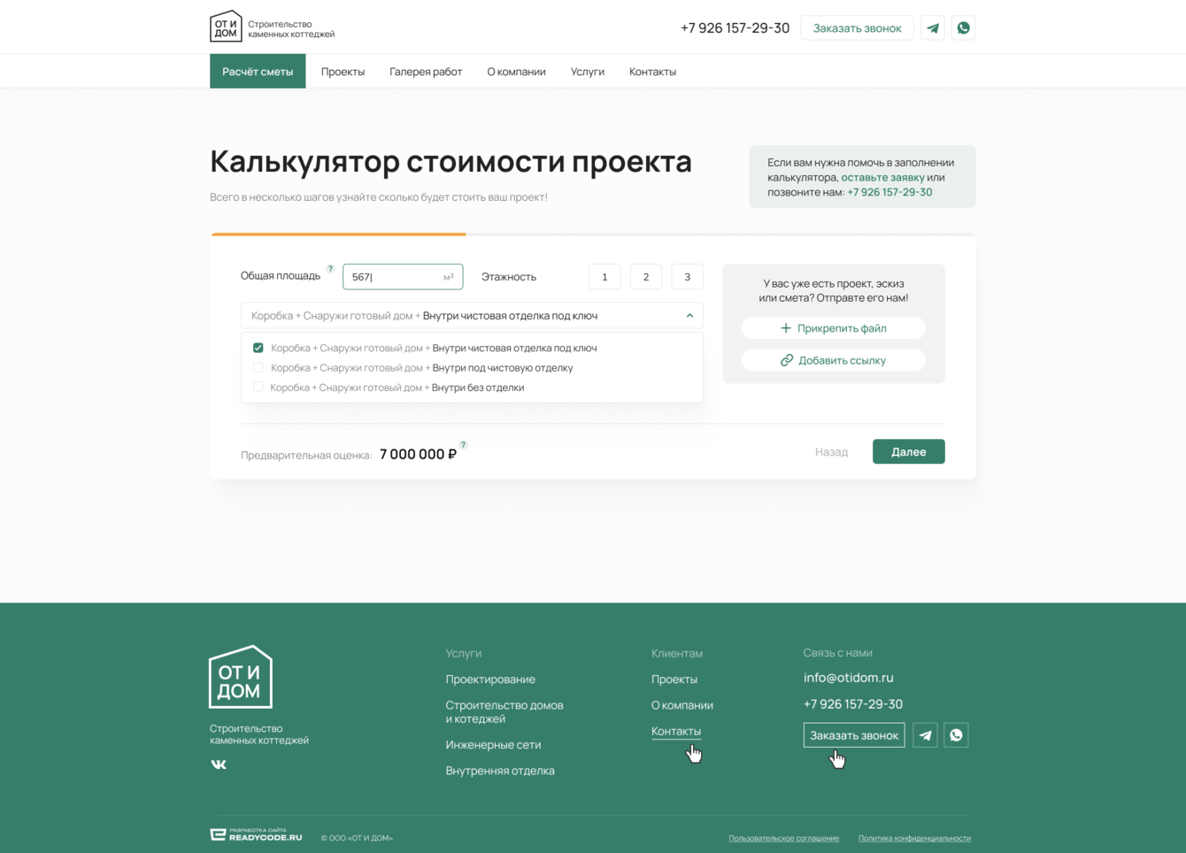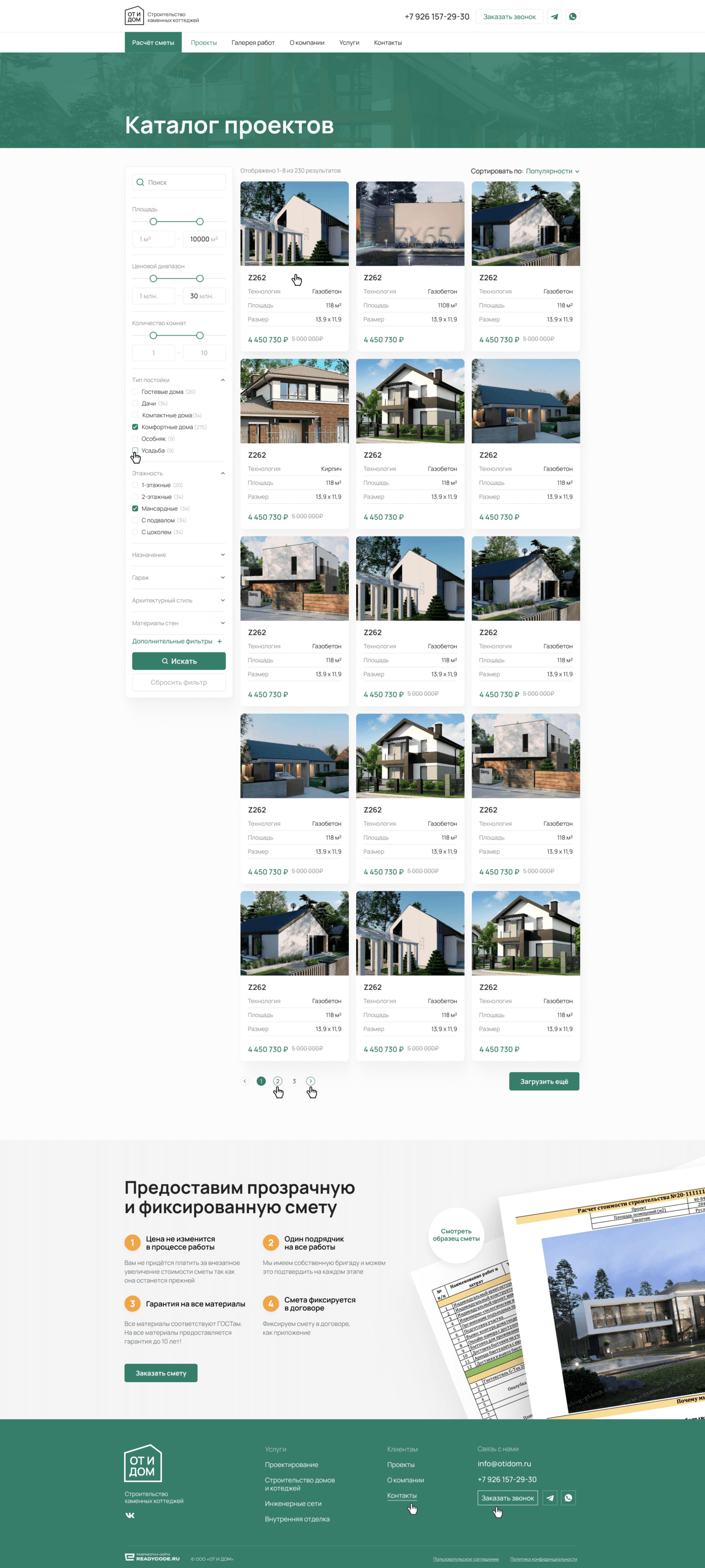 К нам обратилась строительная компания с задачей создания корпоративного сайта с каталогом проектов.