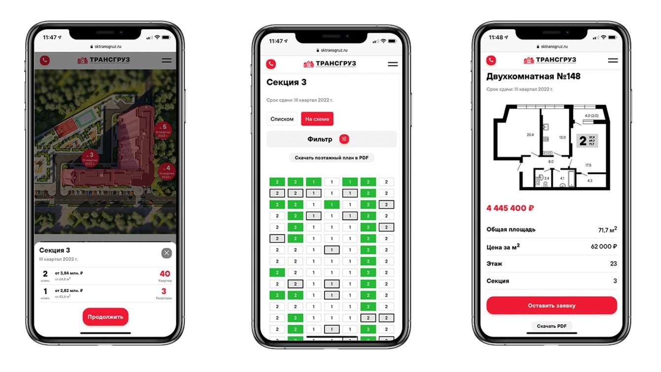 В новой версии мы полностью обновили структуру сайта, сделали интуитивно понятный и удобный интерфейс. Все для того, чтобы покупателям квартир в компании ТрансГруз было проще и быстрее выбрать для себя подходящий вариант.