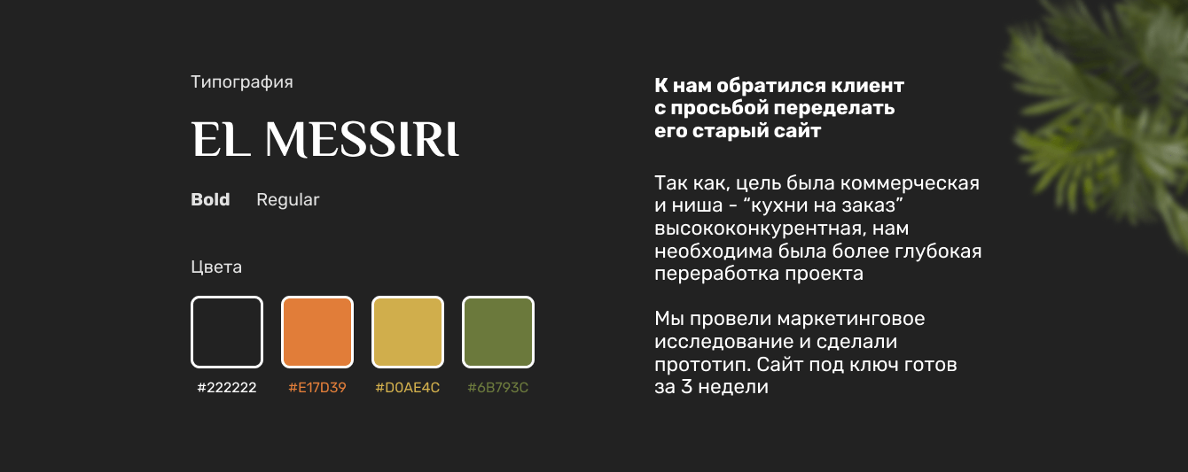 Был проведен анализ прямых конкурентов. Определено позиционирование. Компания специализируется на кухнях с собственным производством для среднего бюджета и выше. Клиент получил элегантный и информативный многостраничный сайт.