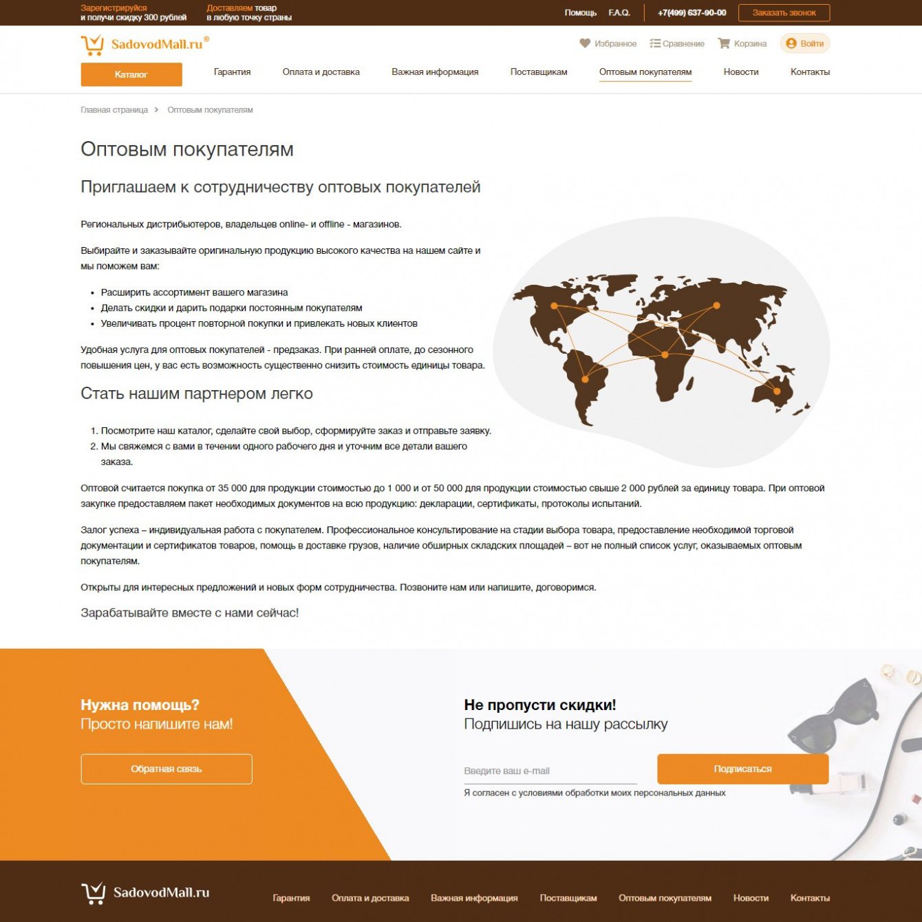Новый сайт ТК Садовод является удобным инструментом как для покупателей, так и для продавцов. Продавцы могут самостоятельно загружать товары через свой личный кабинет. После подтверждения администратором они появятся в общем каталоге. В любой момент поставщик может отредактировать информацию о товаре, поменять цену или снять его с продажи. И все это через удобный интерфейс личного кабинеты.