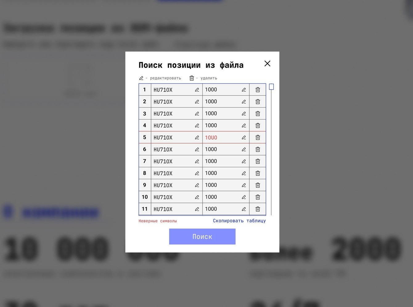 1. По одной номенклатуре. Требуется ввести название и количество (по желанию). В результате будет отображаться список подходящих номенклатур: от разных брендов и поставщиков, с разными условиями по цене, доступности и сроку поставки. Для удобства можно отфильтровать полученные результаты.
