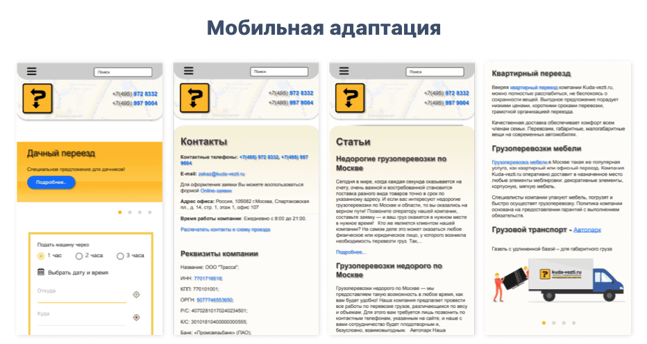 - Разработка индивидуального дизайна для компьютерной и адаптивной версий