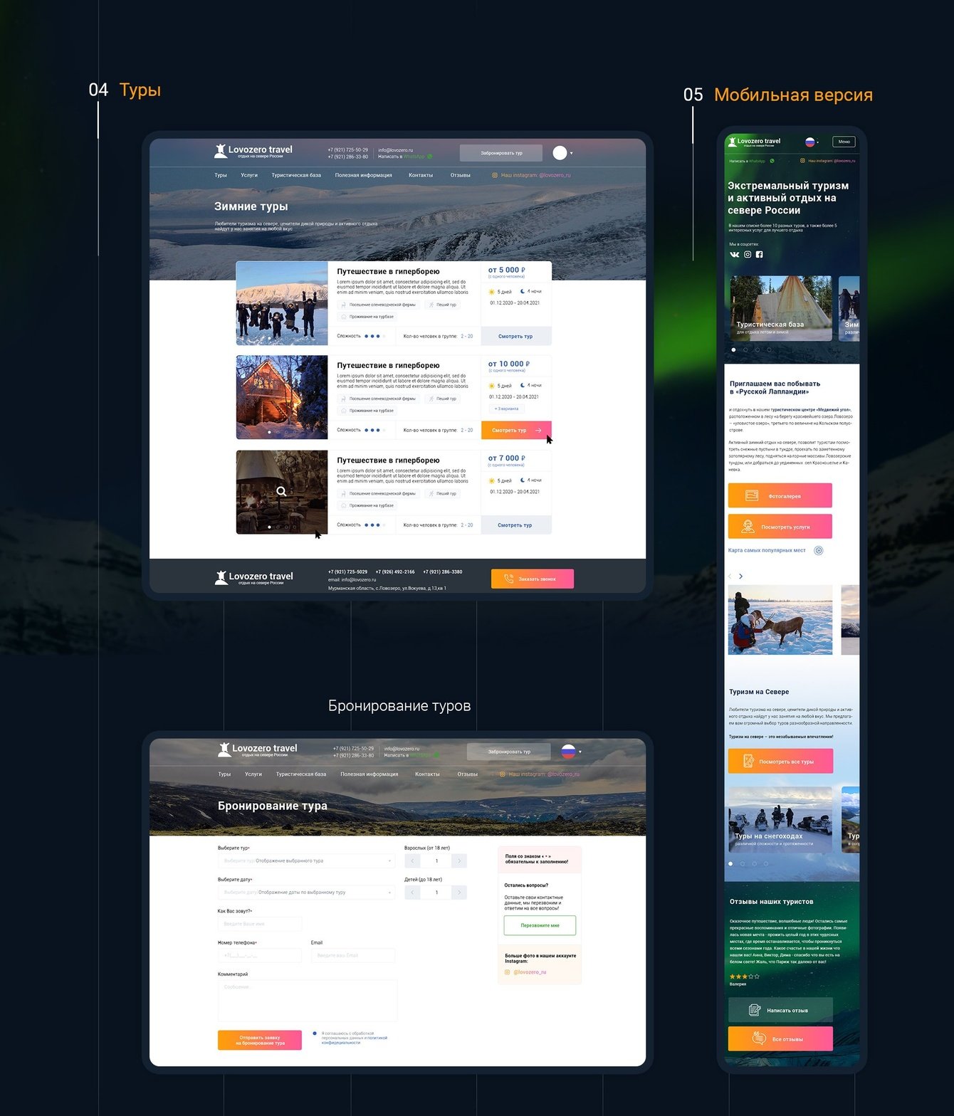 Разработан многостраничный адаптивный сайт с интерактивными блоками, контактными формами, всплывающими окнами и формой бронирования туров.