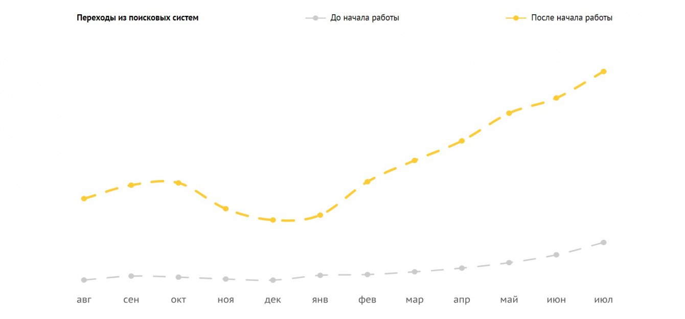 Трафик из поисковых систем в сравнении 2018 и 2019 года увеличен В 2,5 раза.