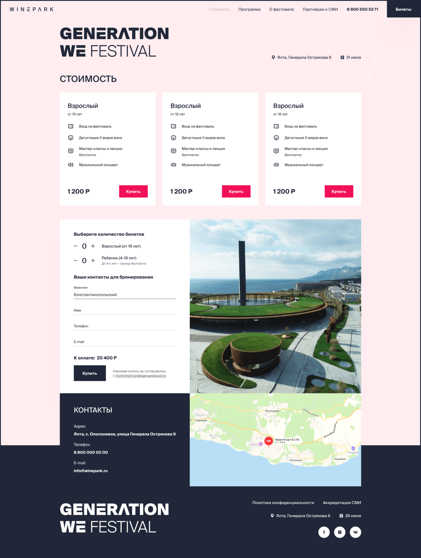 Разработать промо проект под мероприятие в Winepark Mriya.