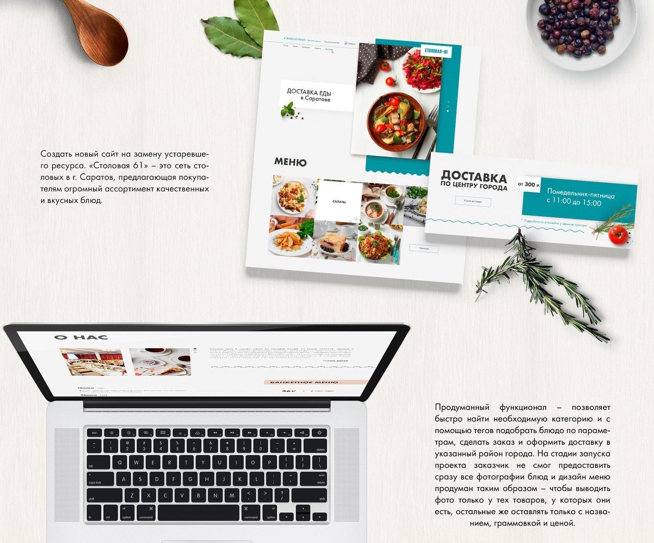 Создать новый сайт на замену устаревшего ресурса. "Столовая 61" - это сеть столовых в городе Саратов, предлагающая покупателям огромный ассортимент качественных и вкусных блюд.