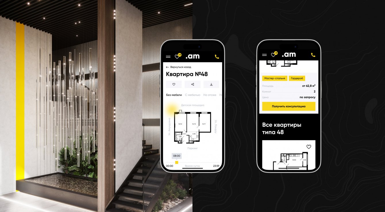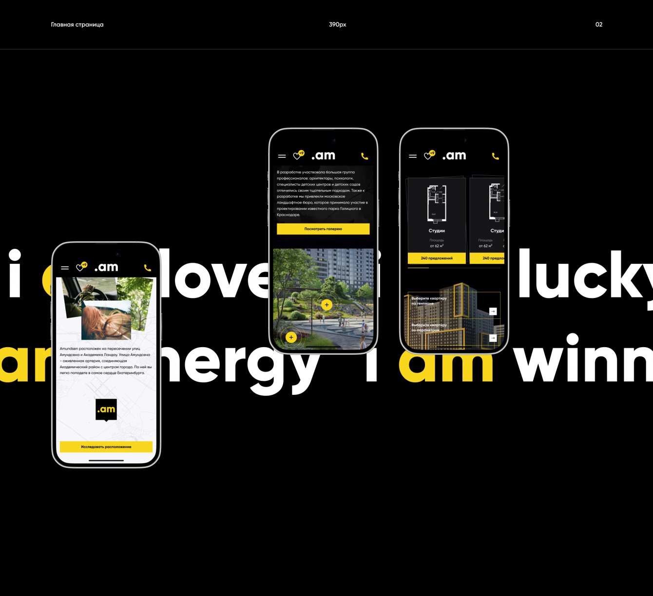 Дизайн сайта был разработан с учетом фирменного стиля проекта. Мягкий округлый шрифт Gilroy передает дружелюбное настроение, а контрастная цветовая палитра задает динамичный характер проекту. Использование желтого цвета подчеркивает дизайн фасадных решений жилого комплекса.