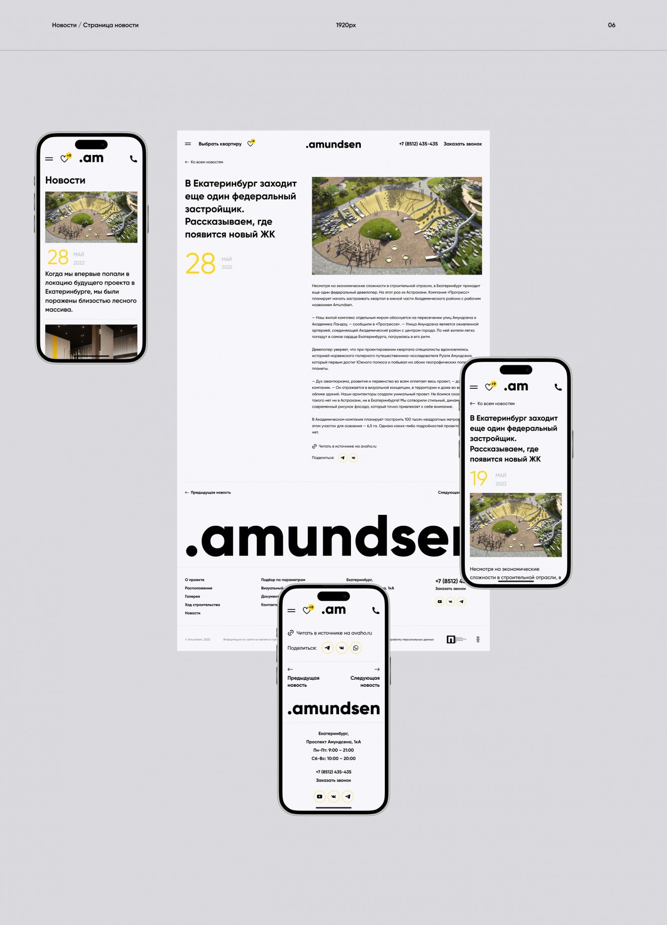 Мы разработали дизайн сайта для проекта Amundsen, строящегося в Екатеринбурге. Концепция ЖК Amundsen вдохновлена великим первооткрывателем Руалем Амундсеном, который не видел перед собой преград и смело отправлялся на поиски новых горизонтов. Он действовал осознанно и знал, как распоряжаться жизненными ресурсами. Благодаря этим качествам он и завоевал звание великого первооткрывателя. Сегодня эти качества отражены в новом проекте девелоперской компании «Прогресс» – Amundsen. Перед нами стояла задача отразить в дизайне дух первооткрывателя и подчеркнуть уникальные особенности жилого комплекса.