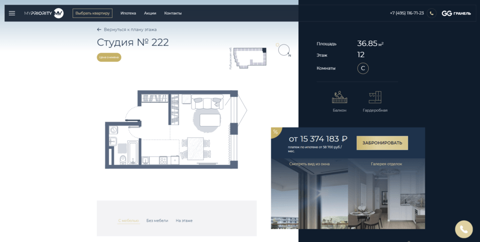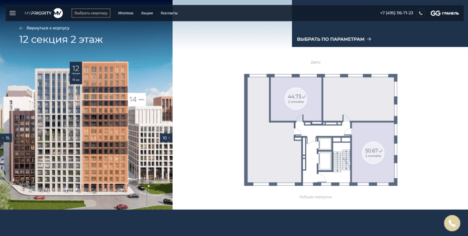 При некоторых уточнениях облика корпуса мы обновили сайт. Также застройщик незначительно скорректировал планировочные решения. Мы оперативно синхронизировались и отражали каждое изменение.