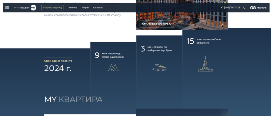 ГК «Гранель» благодарит DD Planet за сотрудничество и успешную реализацию проекта https://basmanny.my-priority.ru/. Нам было важно, чтобы сайт был оснащен современными технологичными механизмами продаж недвижимости, а также привлекал клиентов красивым дизайном.