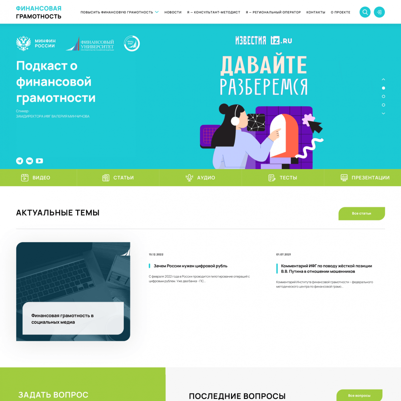 К нам пришел клиент с социальной и очень важной задачей: сделать сайт, где все желающие смогли бы узнать больше о финансовой грамотности, прокачать свои умения обращаться с деньгами. Заказчик - Финансовая Академия при Правительстве РФ.