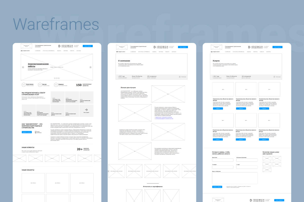 Это позволило нам создать прототип будущего сайта, не тратя времени на поиск путей, как включить что-то, особо приглянувшееся клиенту в старой версии, в новую. Как следствие - нам не пришлось убеждать заказчика отказываться от элементов дизайна, которые нравились ему только потому, что были всегда. Это сделало наши обсуждения прототипа сайта с клиентом куда более продуктивными: представитель “БиолитГрупп” судил будущий сайт непредвзято и указывал нам на компоненты, которые хотел бы изменить из-за того, что они не устраивали его по объективным, а не субъективным причинам.