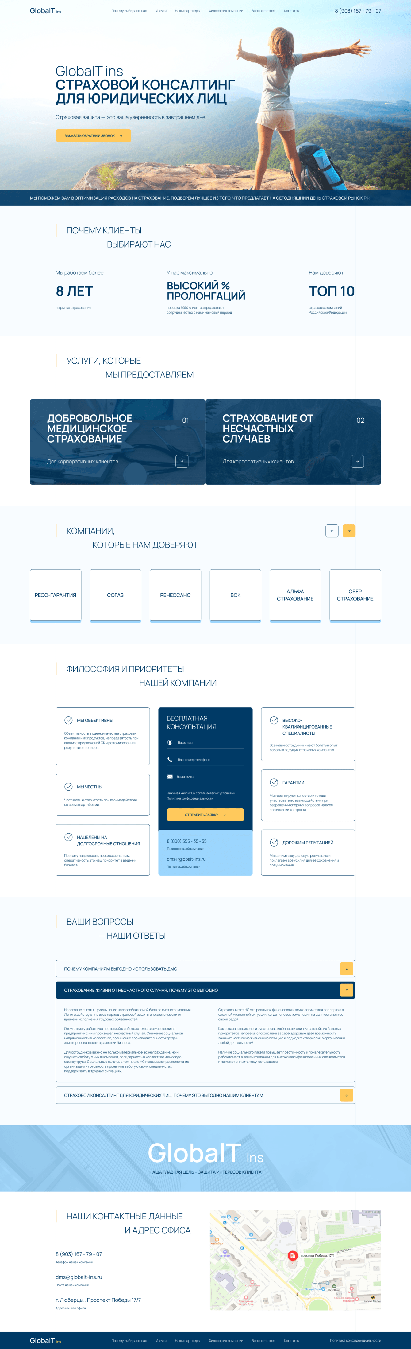 Целью проекта является создание удобного сайта, который предоставляет услуги по страхованию и консультированию в этой области.