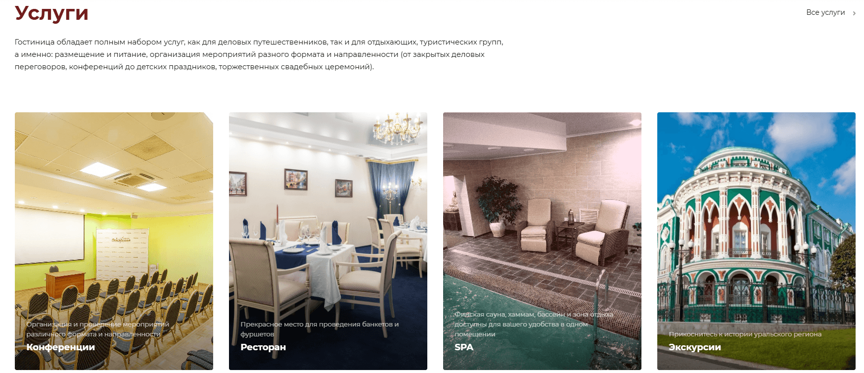 - Услуги: красиво, удобно, с большими фото.