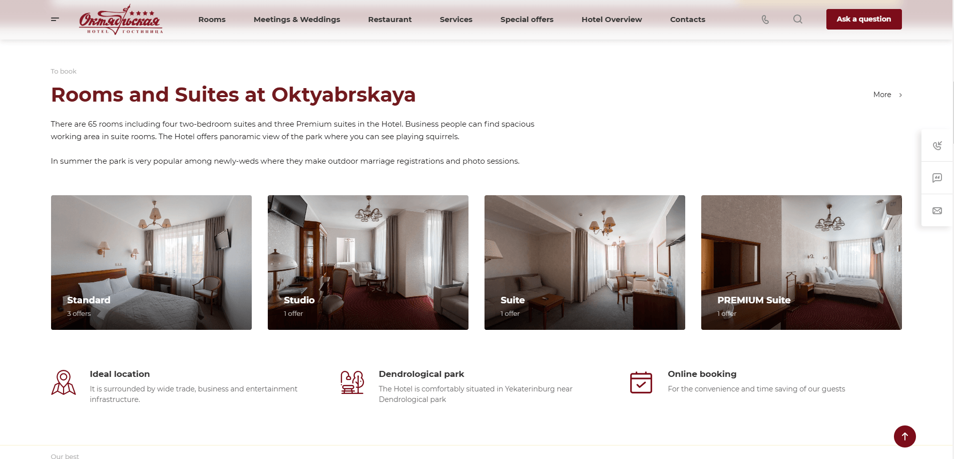 - Сайт стал не просто визиткой, а полноценным инструментом для привлечения и обслуживания гостей. Гостиница получила красивый, быстрый, удобный сайт, который помогает клиентам бронировать номера и знакомиться с услугами. Счастливые гости, довольный клиент и наше портфолио пополнилось новым успешным проектом.