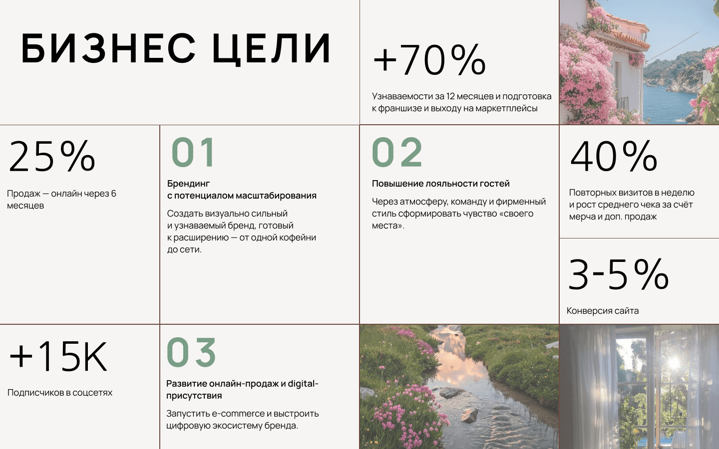 - Анимации: мягкое появление, scroll-in