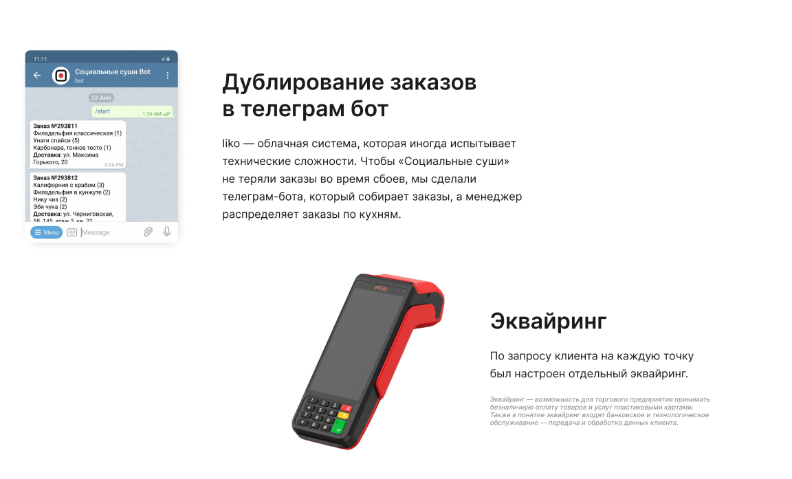— Автоматизировать расчёт стоимости упаковки — подбирать количество и размер упаковки в зависимости от состава заказа. Важно было сделать так, чтобы клиент понимал, что он платит за упаковку отдельно, а также не забывал заказывать палочки, соусы, имбирь и васаби. Это позволило компании сохранять самые низкие цены на роллы в регионе.
