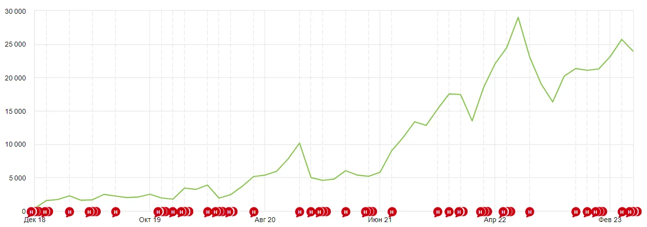 Ежемесячное расширение семантического ядра и добавление новых страниц.
