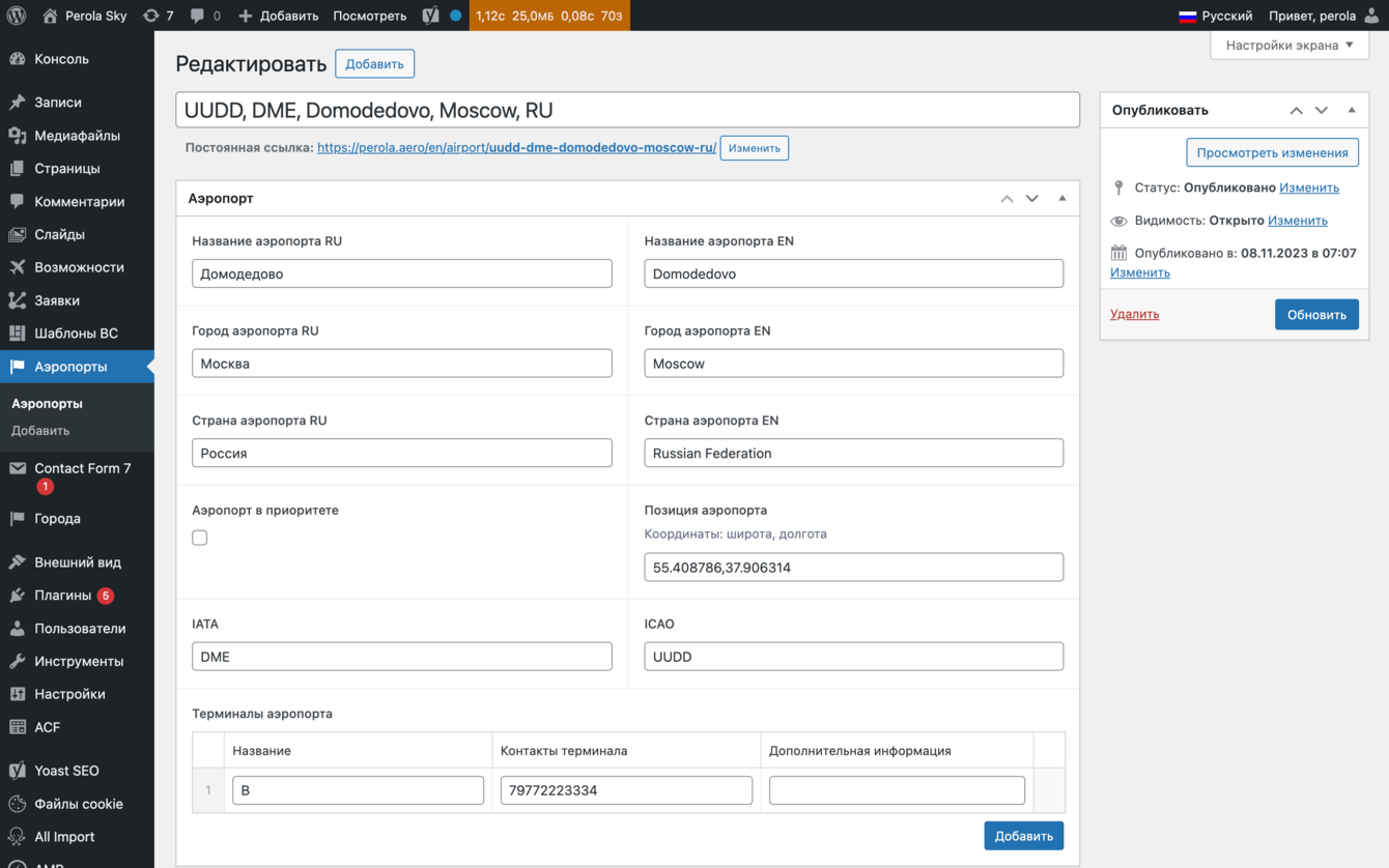 2. в crm, чтобы всем города подтягивались координаты аэропорта для карты перелетов.