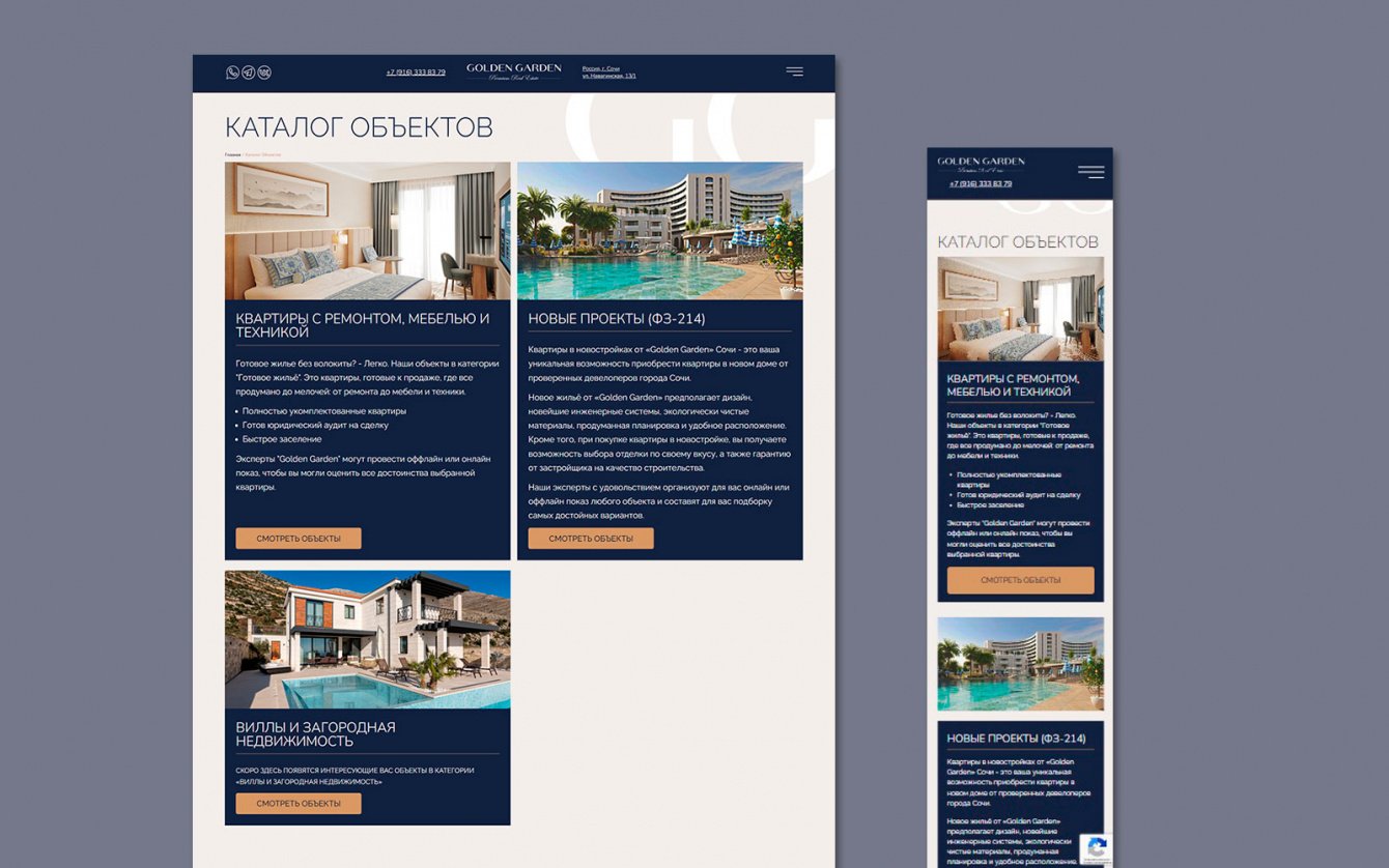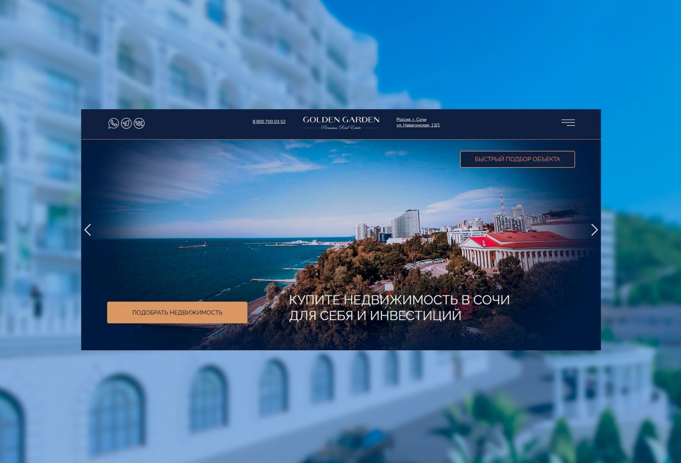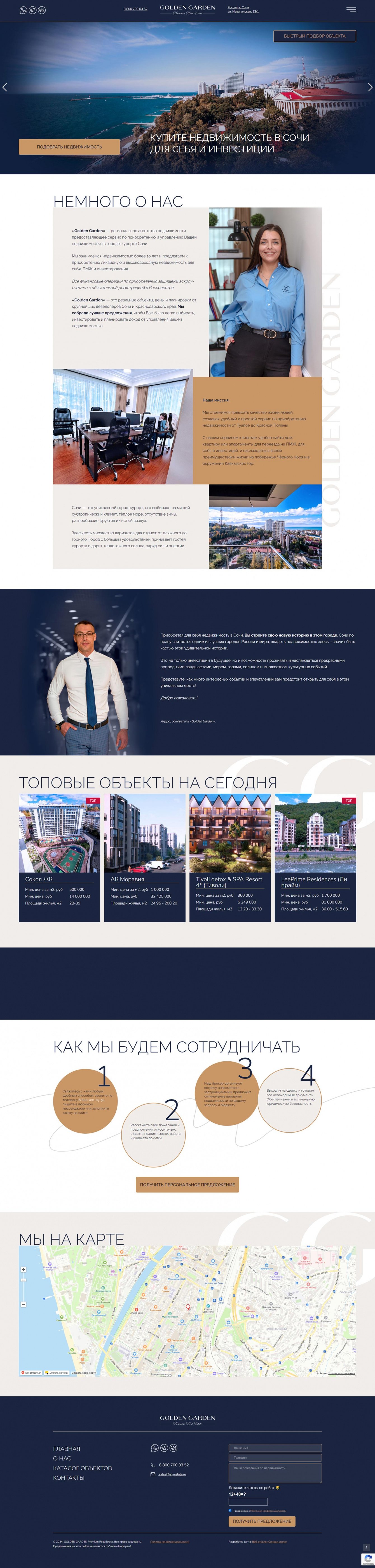 Сайт-каталог агентства недвижимости «Golden Garden» представляет собой уникальный проект, созданный с учётом всех требований и пожеланий клиента.