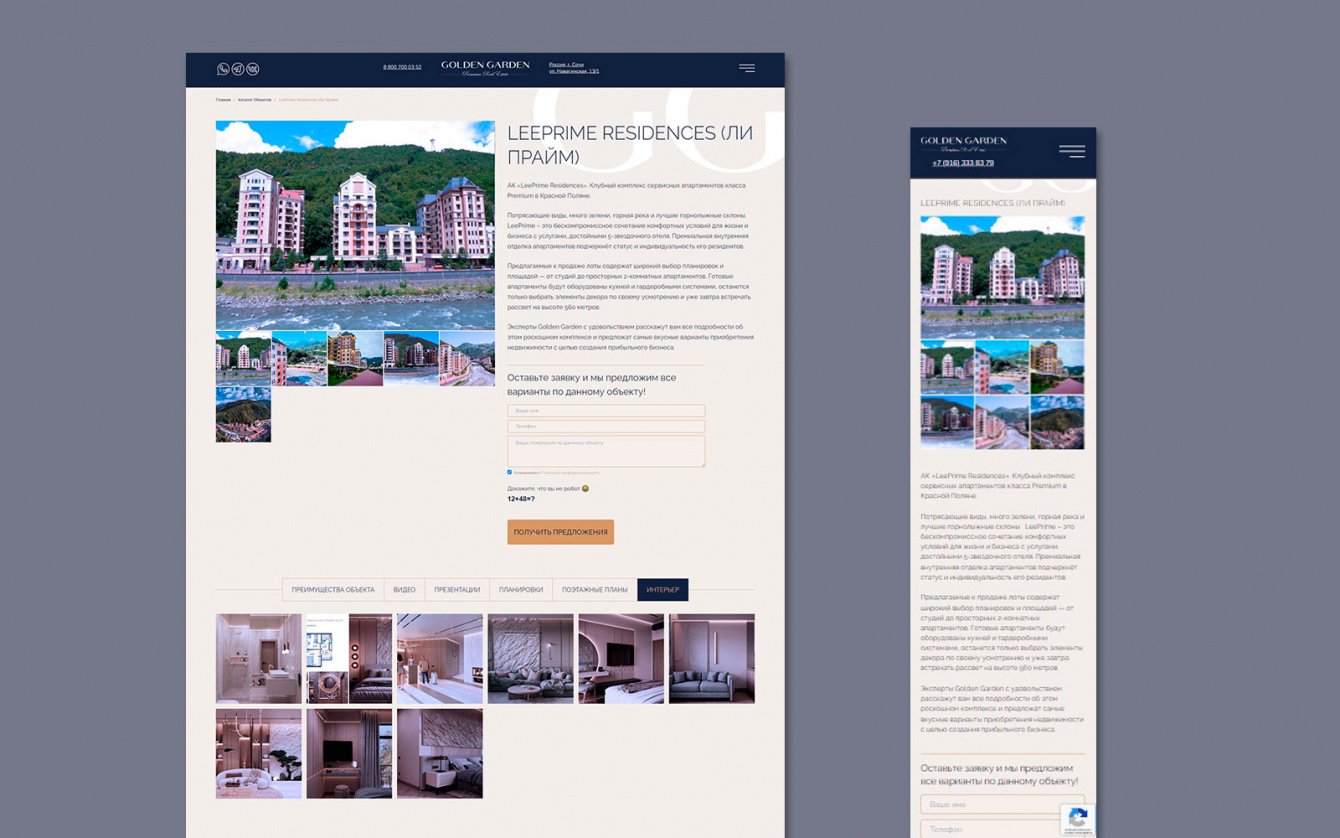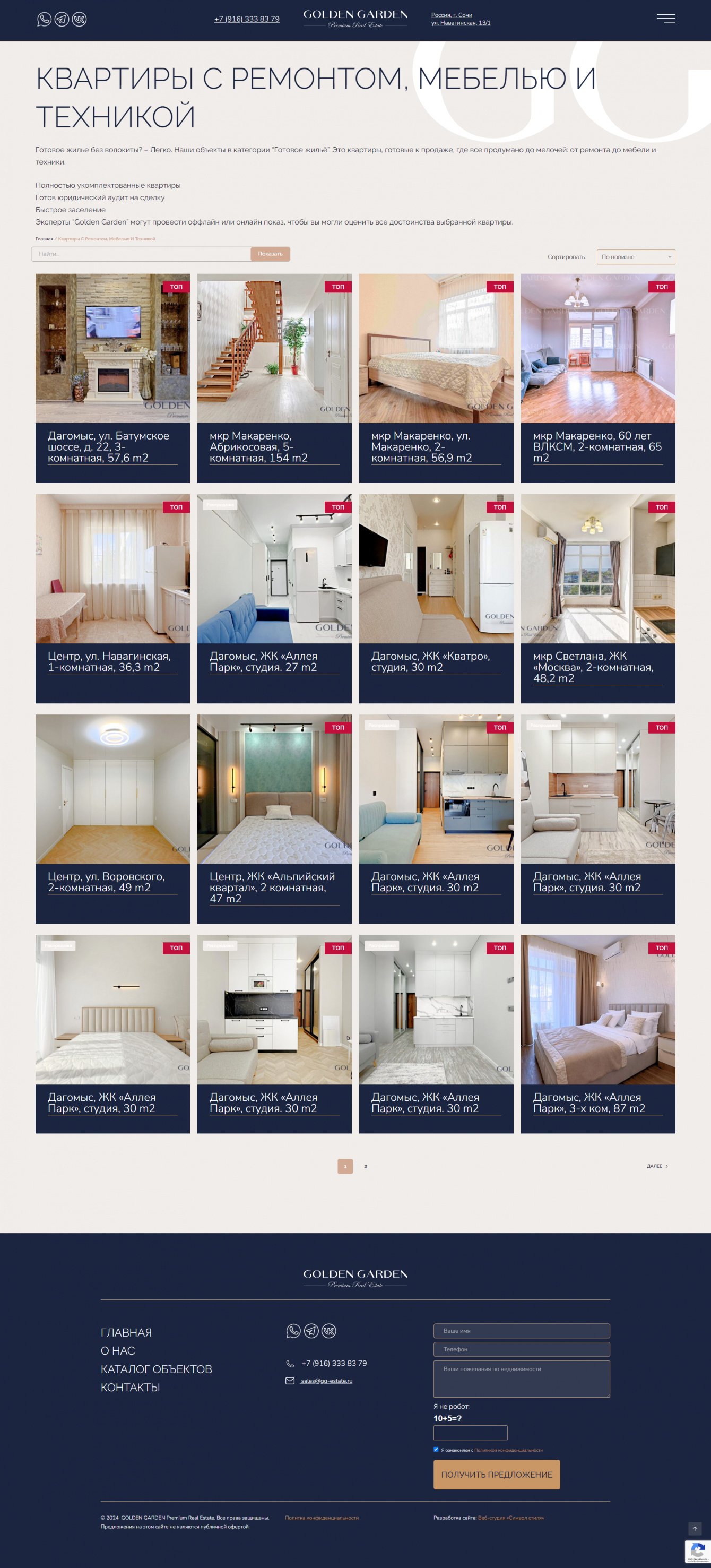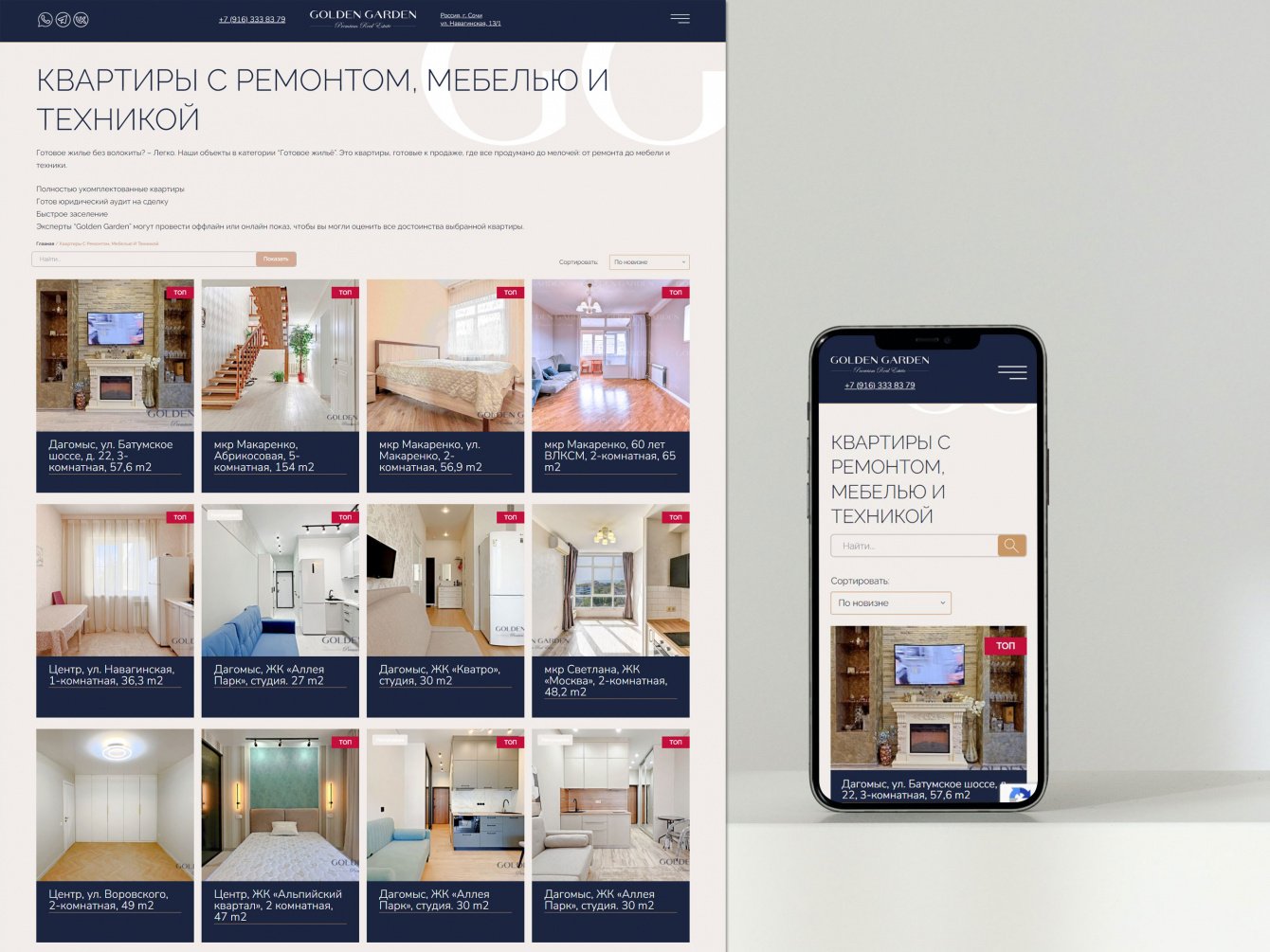 Сайт-каталог агентства недвижимости «Golden Garden» представляет собой уникальный проект, созданный с учётом всех требований и пожеланий клиента.