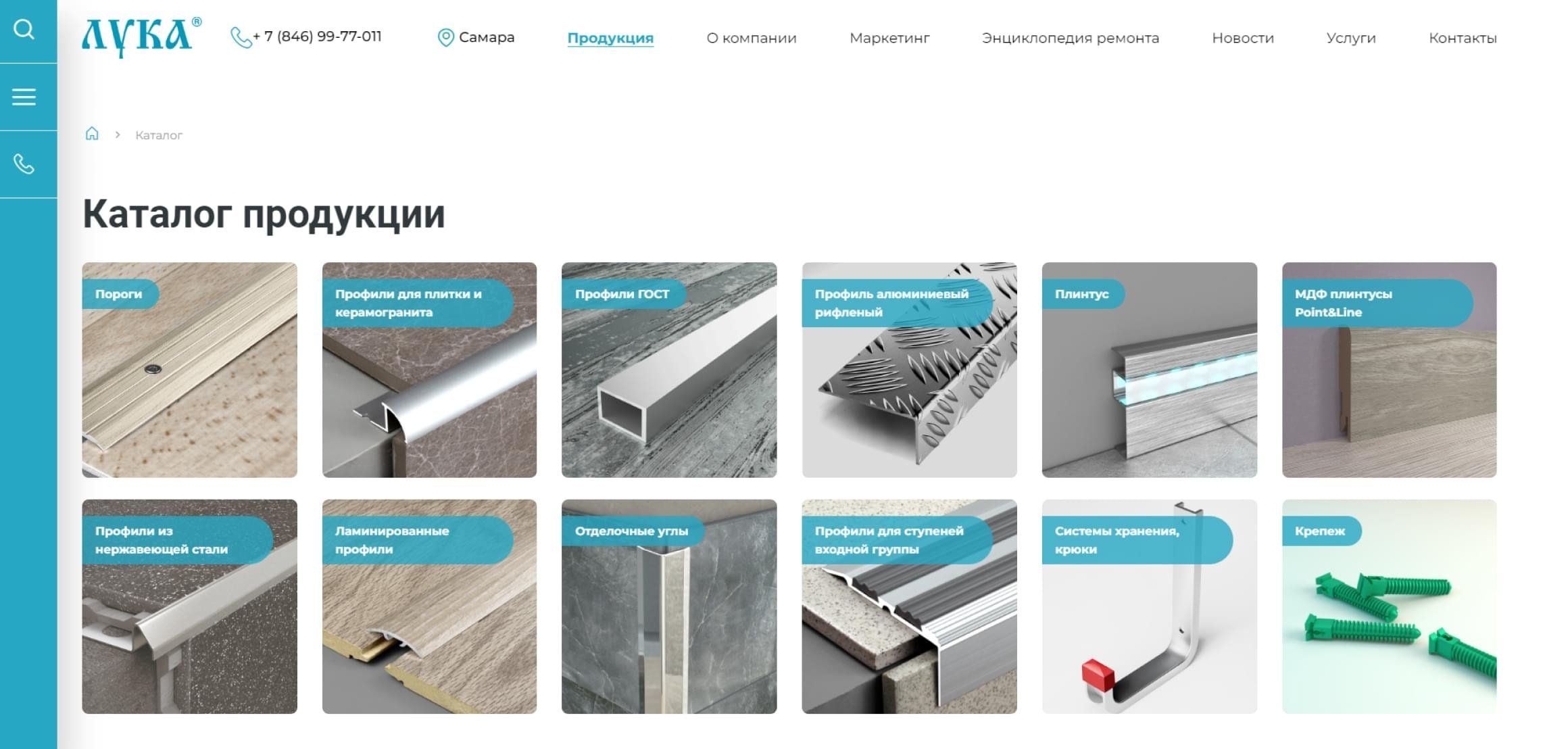 В случае с компанией «Лука» на первый экран логичнее вынести предложение скачать каталог. Мы заранее исследовали ЦА и поняли, что возможность оперативно получить список всех товаров – это ровно то, чего ожидает клиент.