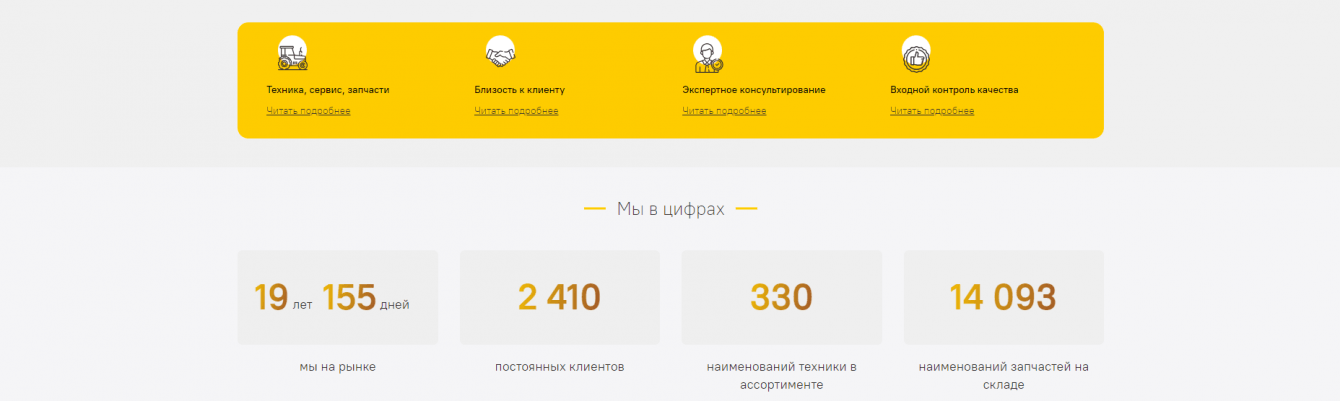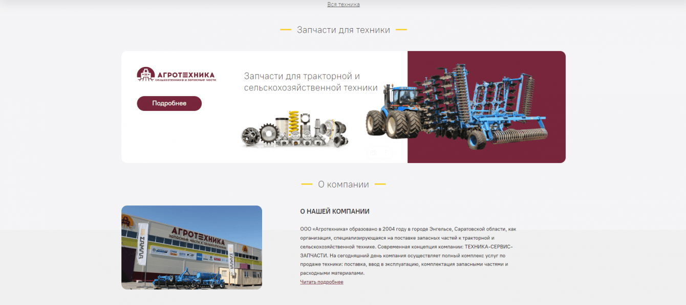 Поскольку целевая аудитория данной тематики включает в себя взрослых людей, крупных предпринимателей и фермеров, мы понимаем, что они часто не хотят тратить много времени на ориентирование по сайту. Поэтому наша задача заключалась в создании минималистичного и простого для понимания сайта, который бы содержал всю необходимую информацию. Для облегчения навигации как по всей главной странице, так и в шапке сайта предусмотрены разделы с интересующими страницами.