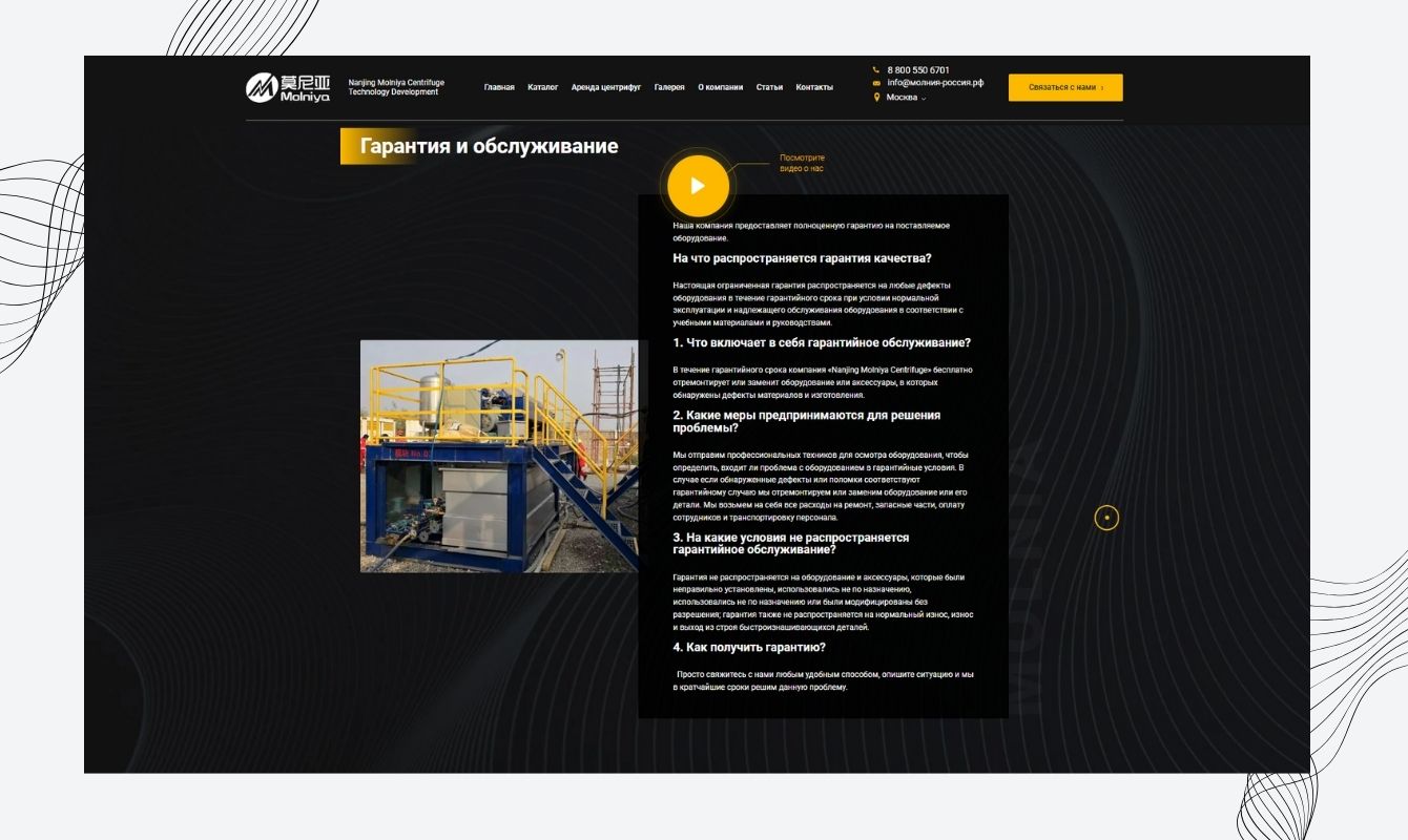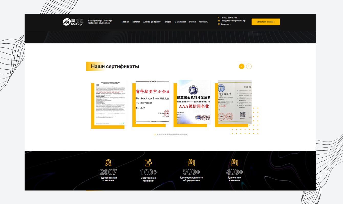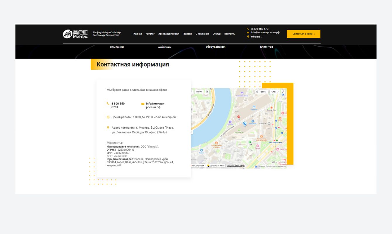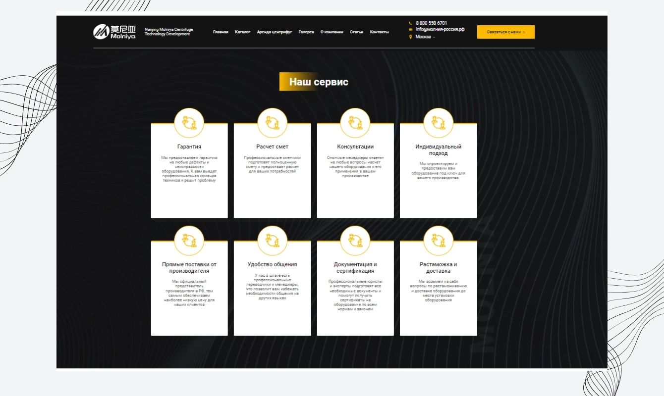 Одной из основных сложностей, с которыми мы столкнулись в процессе работы над проектом, было создание каталога с большим объемом информации. Продуктовый ассортимент "Молния РФ" включает в себя множество моделей центрифуг, каждая из которых имеет свои уникальные характеристики и преимущества. Это означало, что нам необходимо было разработать интуитивно понятную структуру каталога, которая позволила бы пользователям легко находить нужные товары и получать исчерпывающую информацию о них. Мы провели анализ пользовательского опыта и разработали удобную навигацию по сайту, которая включала фильтры по различным параметрам, таким как тип центрифуги, производительность и цена.
