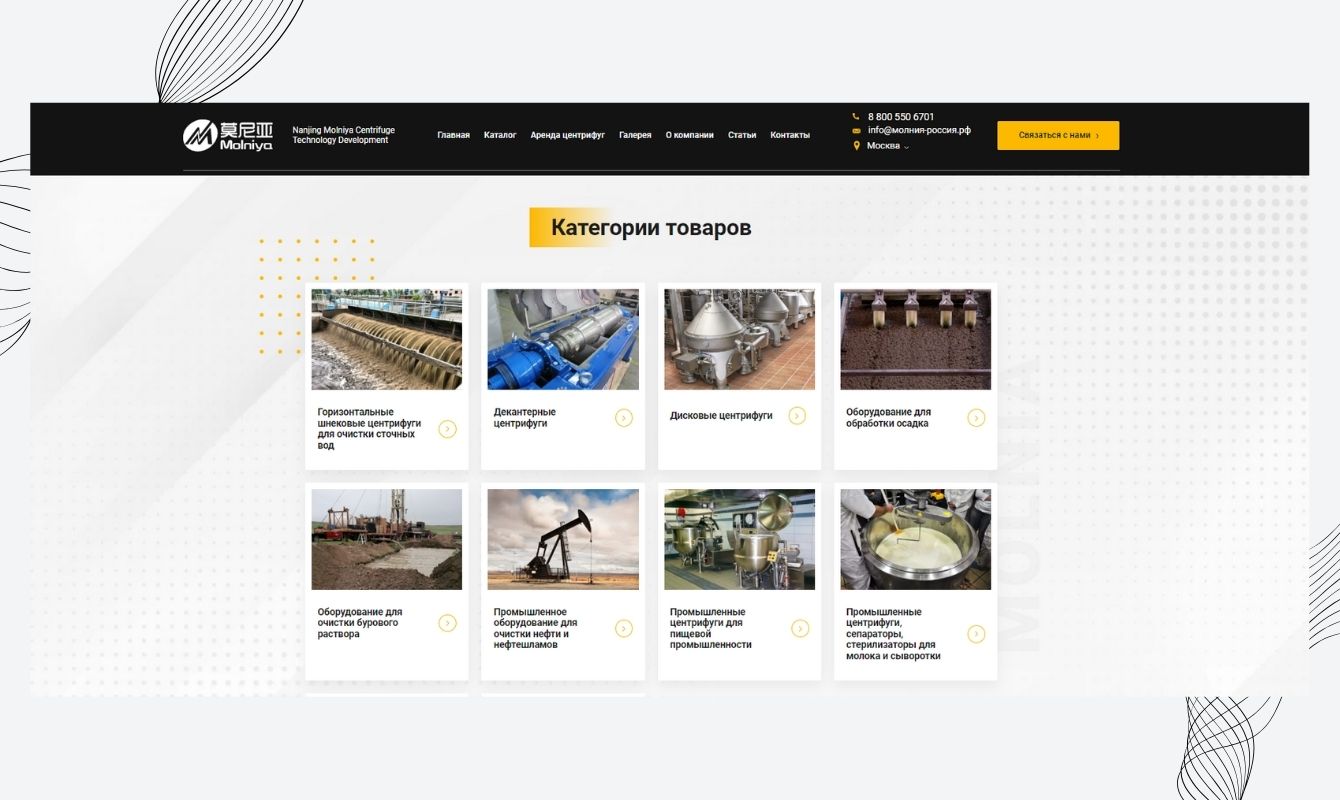 2. Разработка структуры сайта: Мы создали интуитивно понятную навигацию, которая позволяет пользователям легко находить необходимую информацию. Каталог был разбит на категории и подкатегории, что упрощает поиск центрифуг по типу, производительности и другим параметрам.