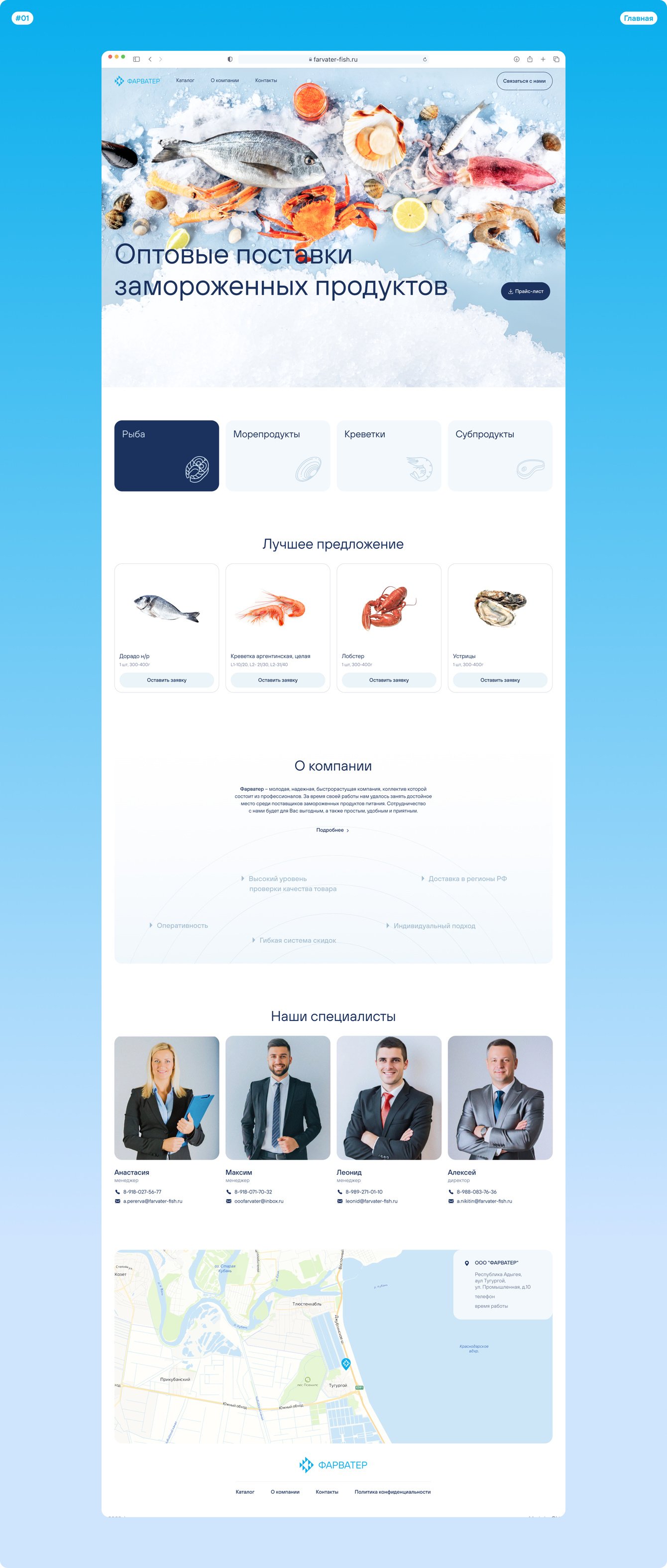 Разработать сайт-каталог поставщика рыбы и морепродуктов в Краснодаре