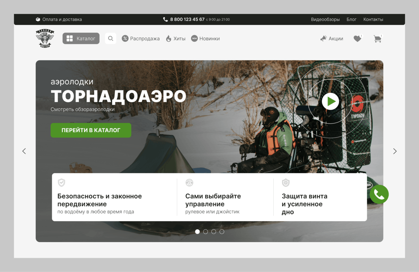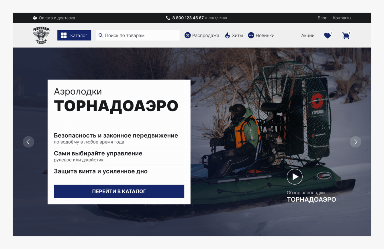 Ко мне обратилась Елена с просьбой разработать сайт. Мы уже сотрудничали с ней ранее, когда она работала в компании «ИТЦ Ф1» — мы внедряли amoCRM. Сейчас Елена сменила место работы и предложила нам выполнить для неё новую задачу: она вела проект магазина лодок и товаров для активного отдыха «Заводи мотор».