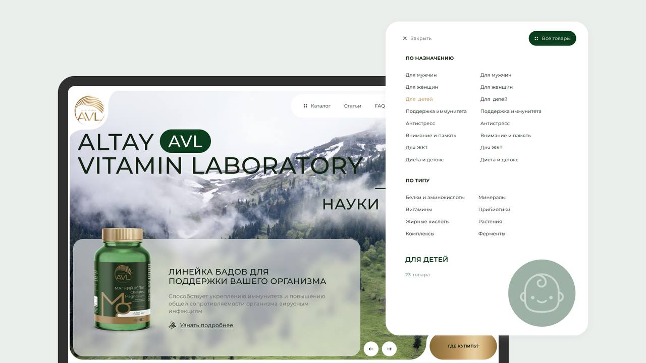 Компания «Алтайвитамины» нуждалась в современном корпоративном сайте - каталоге, который представит компанию как надежного производителя БАДов с высоким уровнем качества и научным подходом, упростит коммуникацию с потенциальными партнерами и заказчиками, позволит продемонстрировать производственные возможности, технологические процессы и преимущества компании, будет соответствовать требованиям UX/UI-дизайна, обеспечит удобную навигацию и интуитивный интерфейс, а также будет оптимизирован для поисковых систем, включая техническую SEO-оптимизацию.