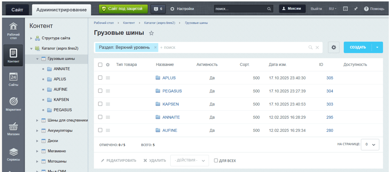 Интеграция марок и моделей автомобилей на сайт позволила клиенту сосредоточиться на основных задачах бизнеса, не тратя время на ручное внесение информации, а посетителям — быстро подбирать шины и диски конкретно под свой автомобиль.