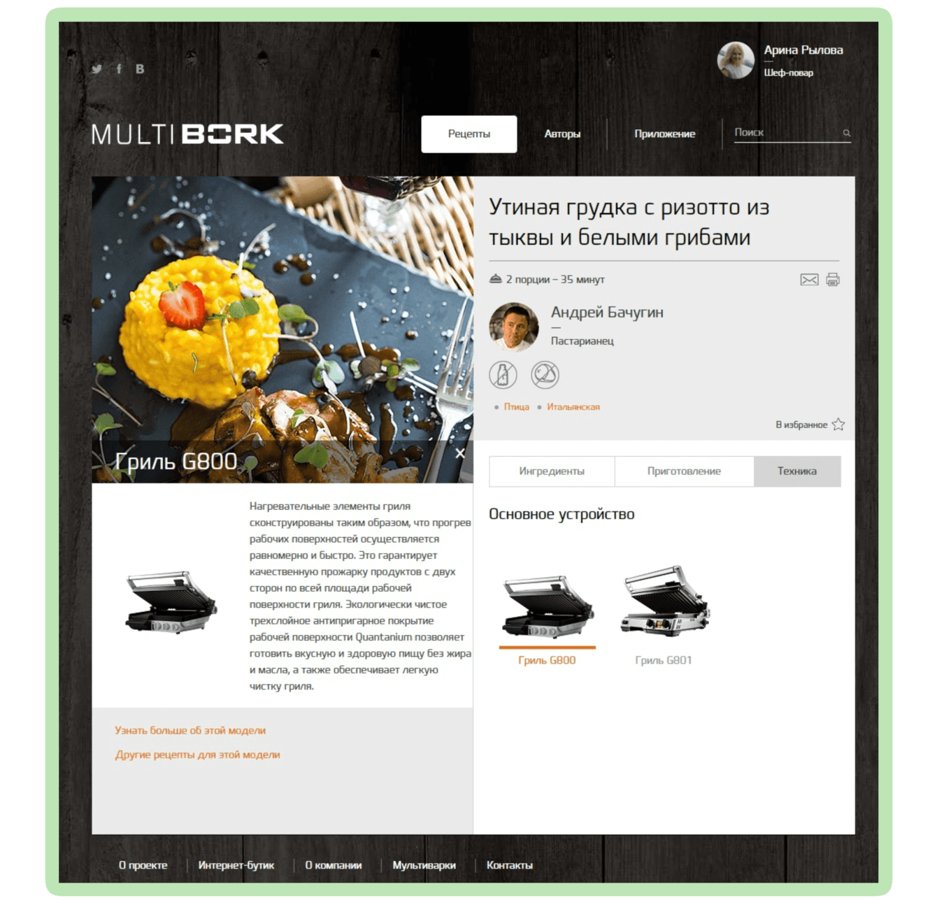Решили привязать к каждому рецепту конкретную технику, чтобы пользователь мог сразу ее приобрести. У Bork есть отдельный интернет-магазин для продажи техники. Связали добавленную в рецепт технику с техникой интернет-магазина.