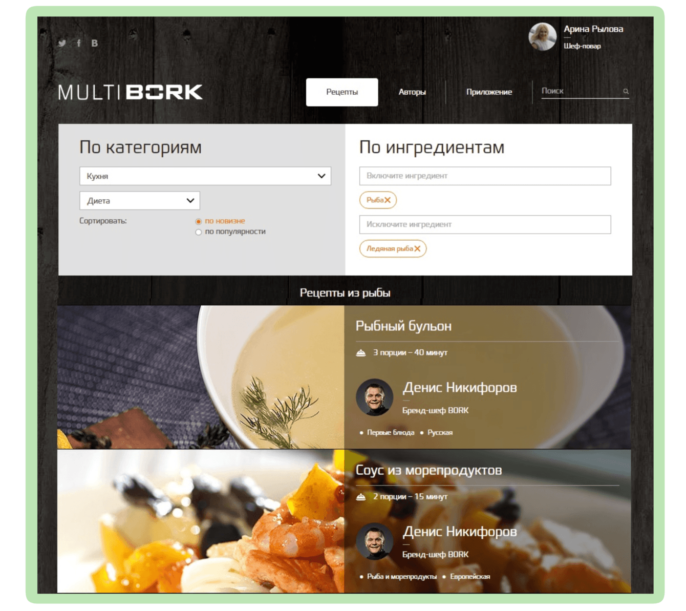 Клиент пришел к нам с готовым сайтом. Сайт - кулинарная книга с рецептами от шеф-поваров со всей России. Рецепты построены на работе с техникой Bork. Наша задача - доработка цифрового сборника рецептов для большей конверсионности.