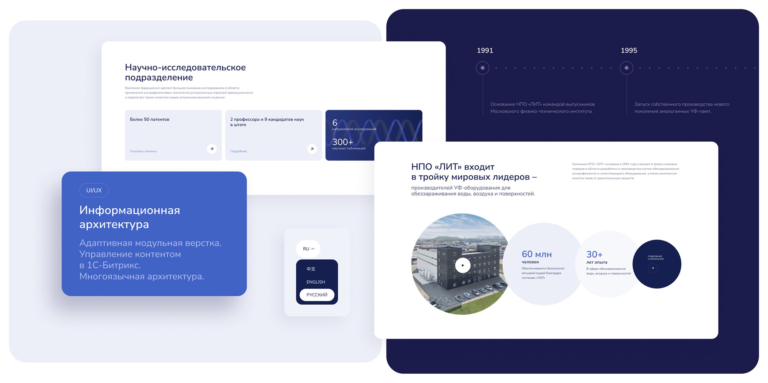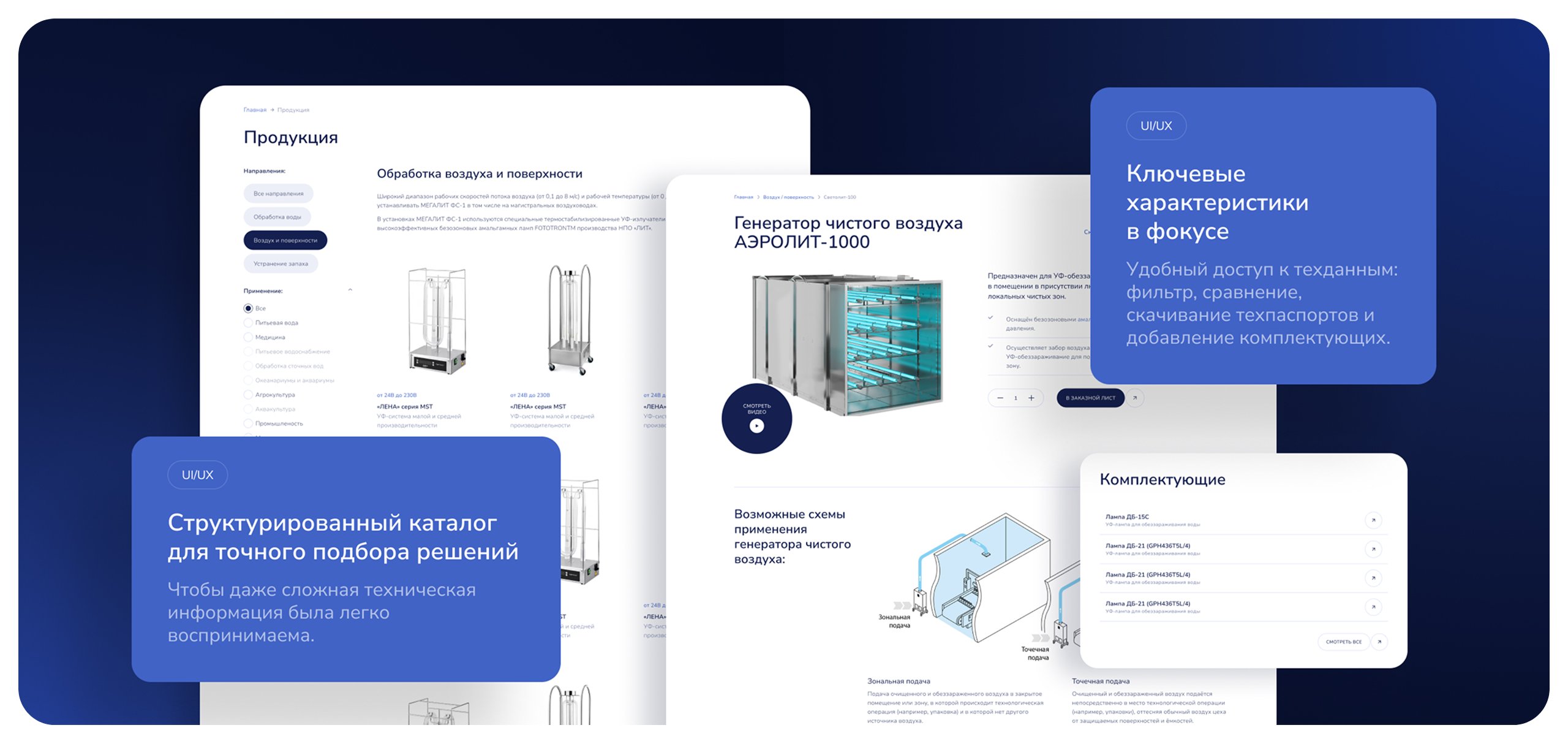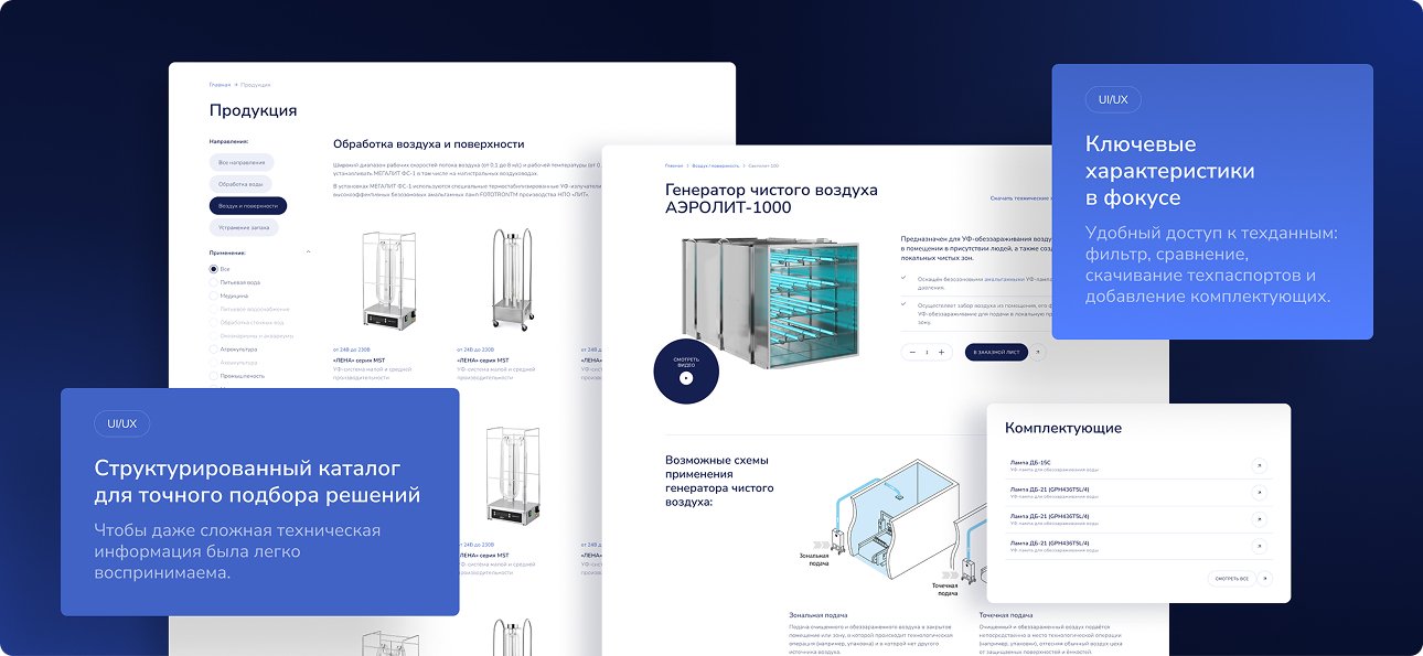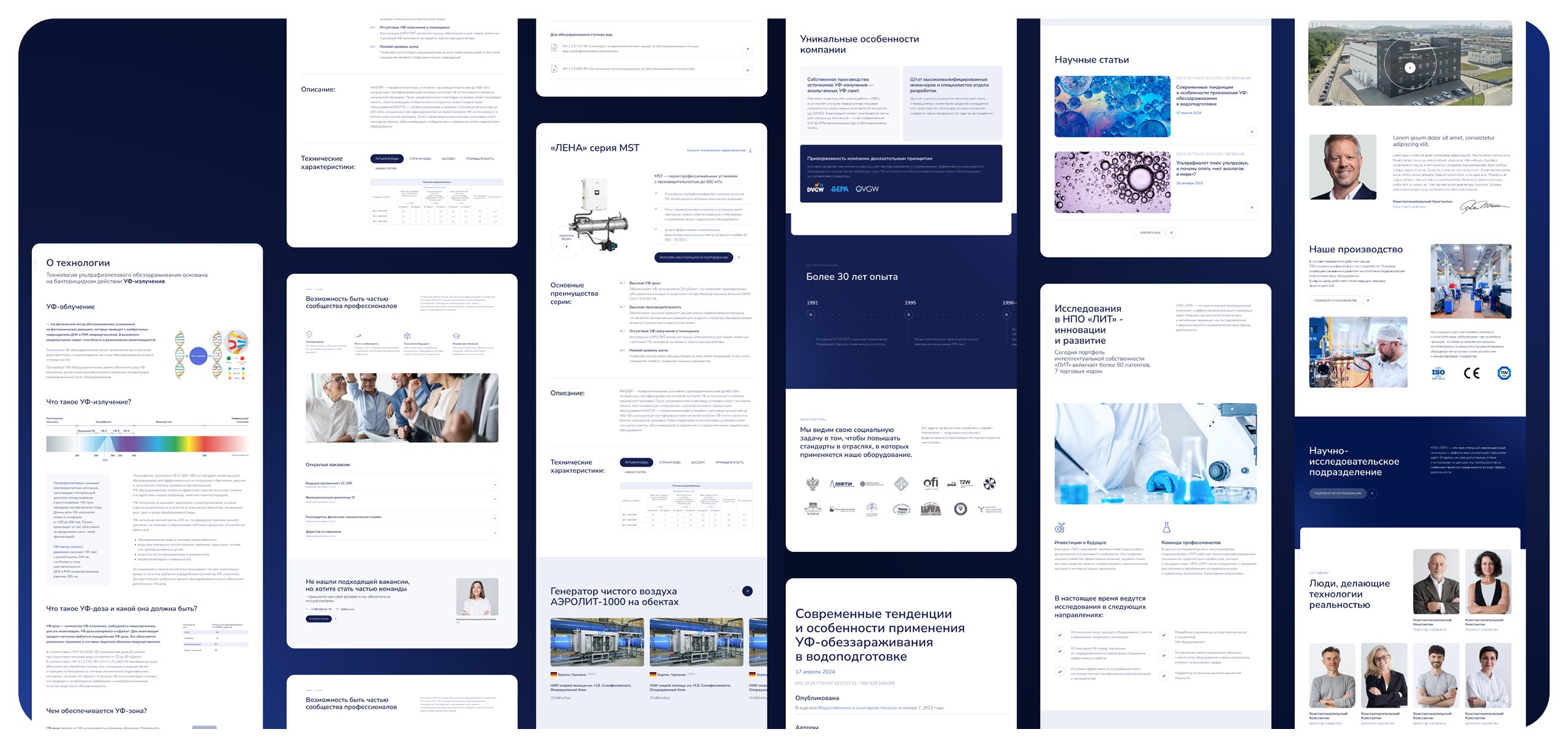 Сайт выполнен в современном стиле, сочетающем технологичность и минимализм. Мы продумали визуальную иерархию, чтобы даже сложная техническая информация была легко воспринимаема. Навигация построена так, чтобы разные аудитории (инженеры, руководители, технические специалисты) могли быстро находить нужное.