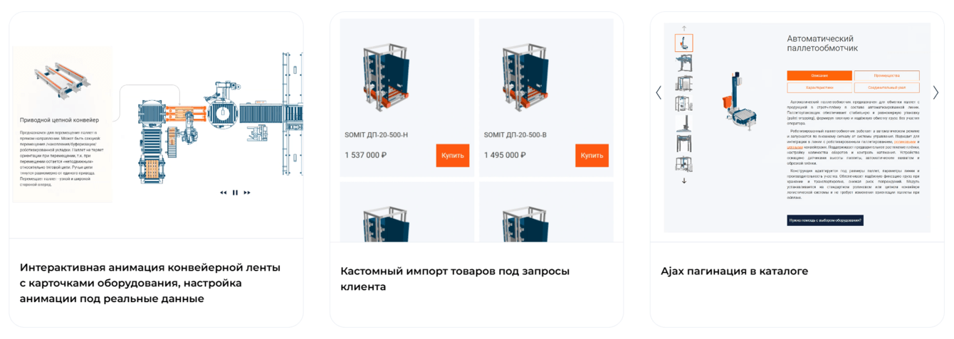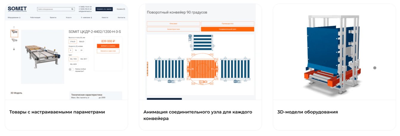 Компания SOMIT получила цельный визуальный образ и сайт-каталог, основанный на экосистеме стандартных конвейерных решений, покрывающих до 90% задач заказчиков. Сайт одновременно выполняет несколько ролей: подробно объясняет продукт, усиливает образ надёжного инженерного бренда и приводит пользователя к оставлению заявки.