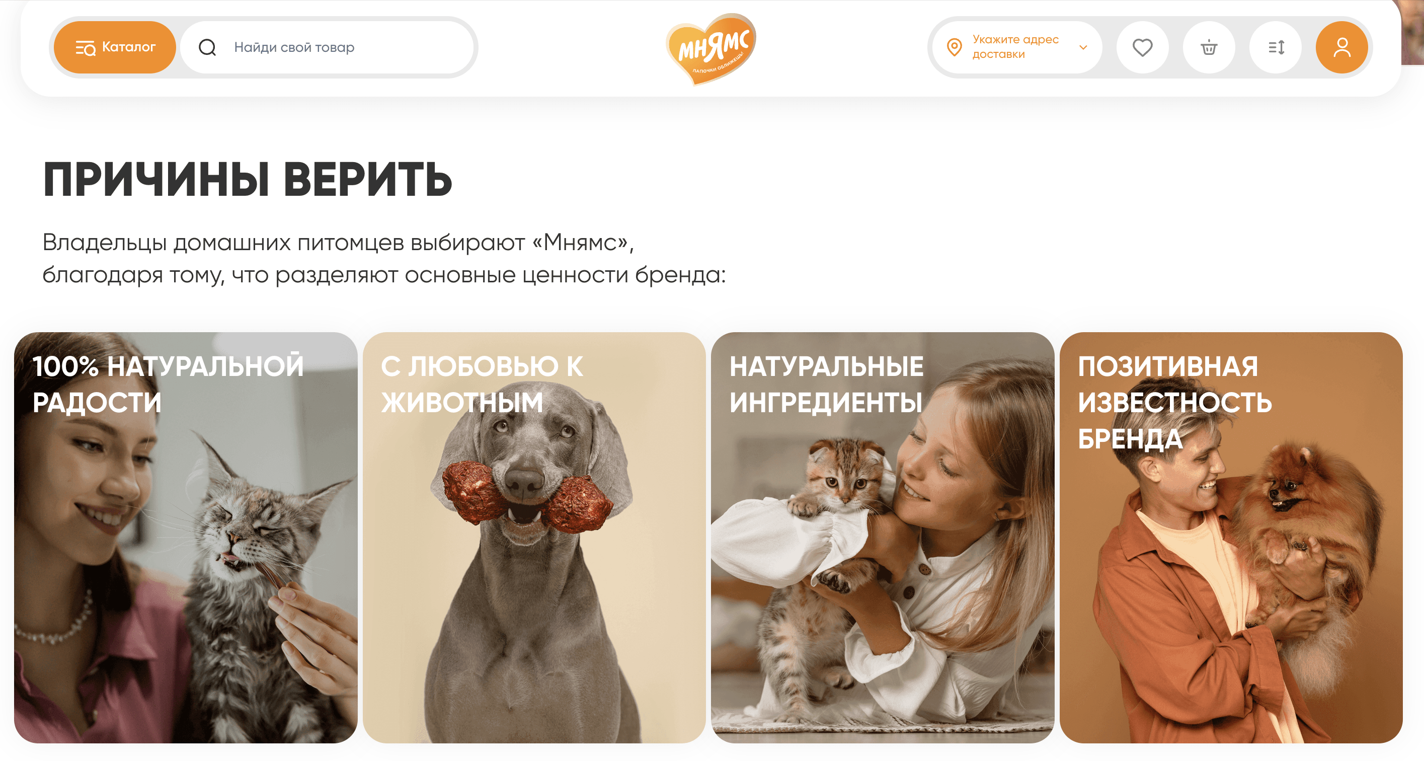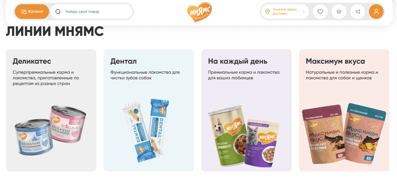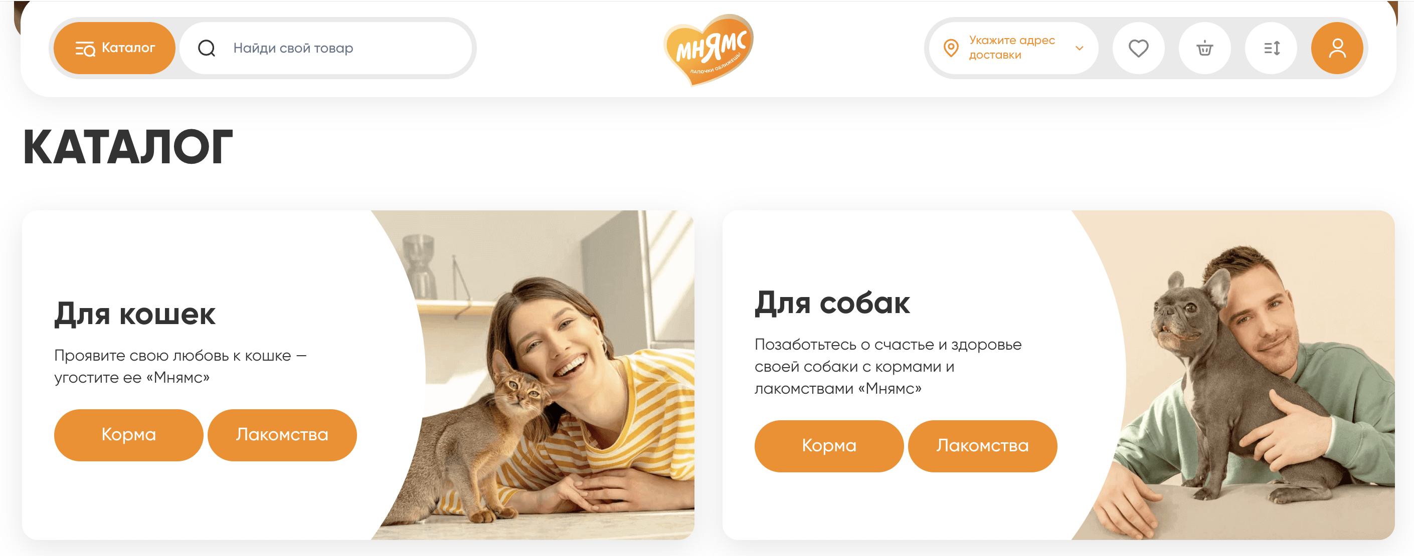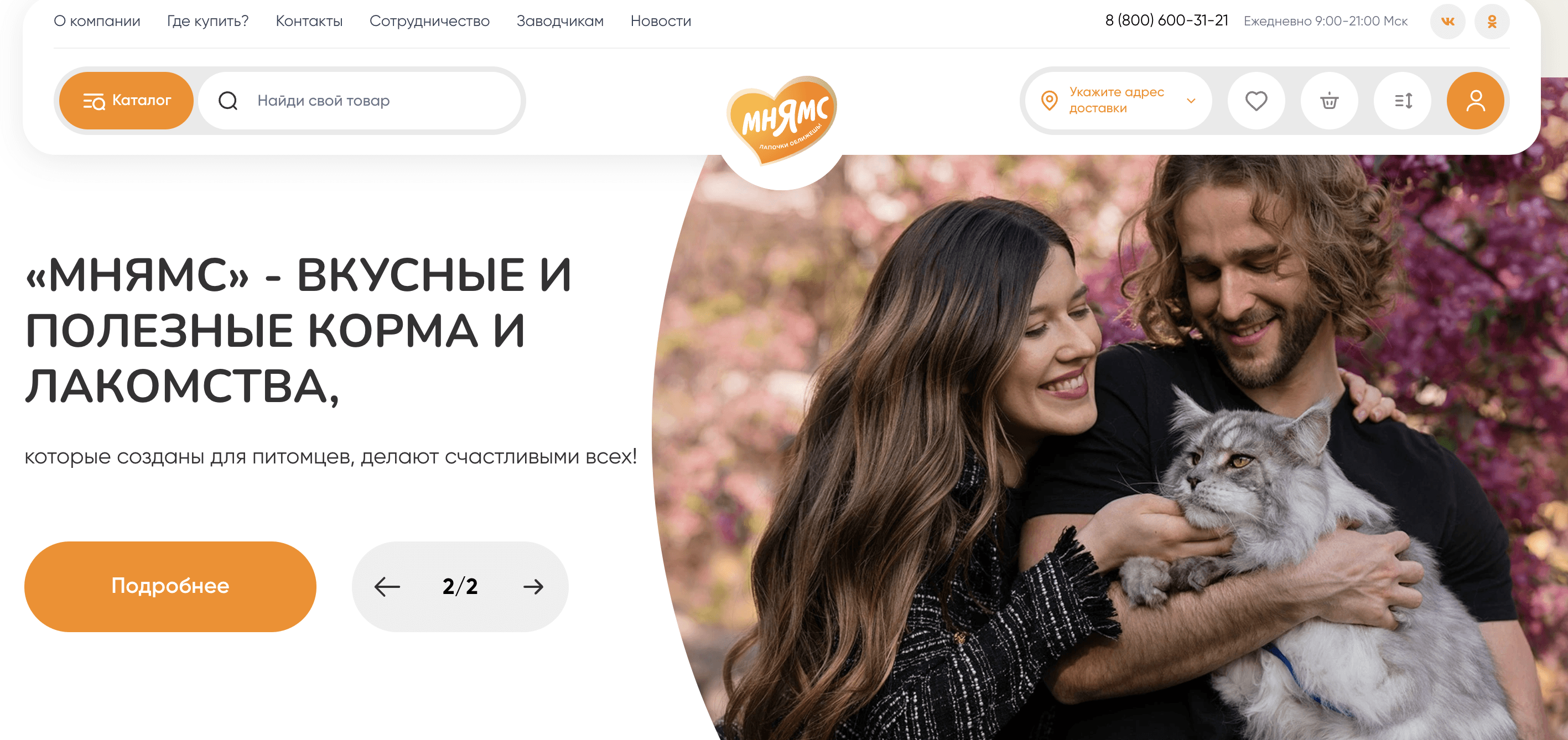 Проект Мнямс — это про весёлую энергию, яркий вкус и любовь к питомцам. Мы постарались сделать сайт таким же: живым, дружелюбным и простым в использовании. При этом заложили функциональность и гибкость, чтобы бренд мог уверенно развиваться онлайн.