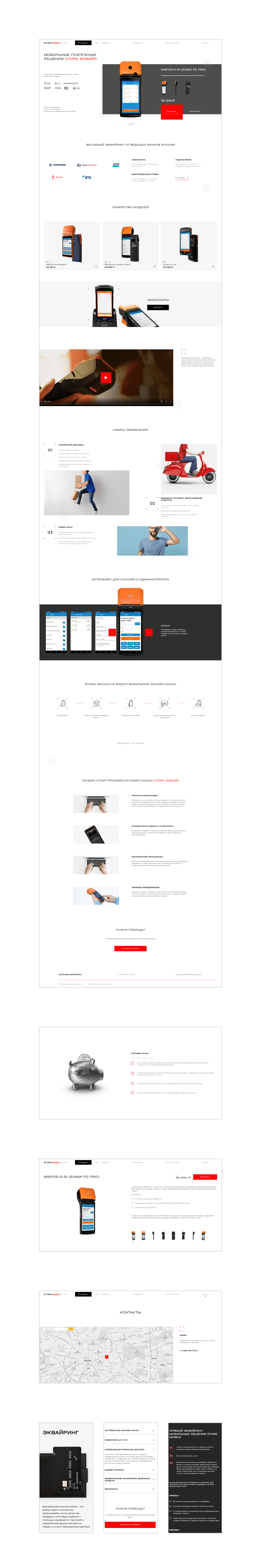 Изначально планировалось сделать лендинг, но в ходе работы стало понятно, что он не решает в полной мере задач клиента. Поэтому было выполнено масштабирование — добавлены страницы "Эквайринг", "СПБ", отдельно вынесены "Оплата и доставка", а также "Контакты".
