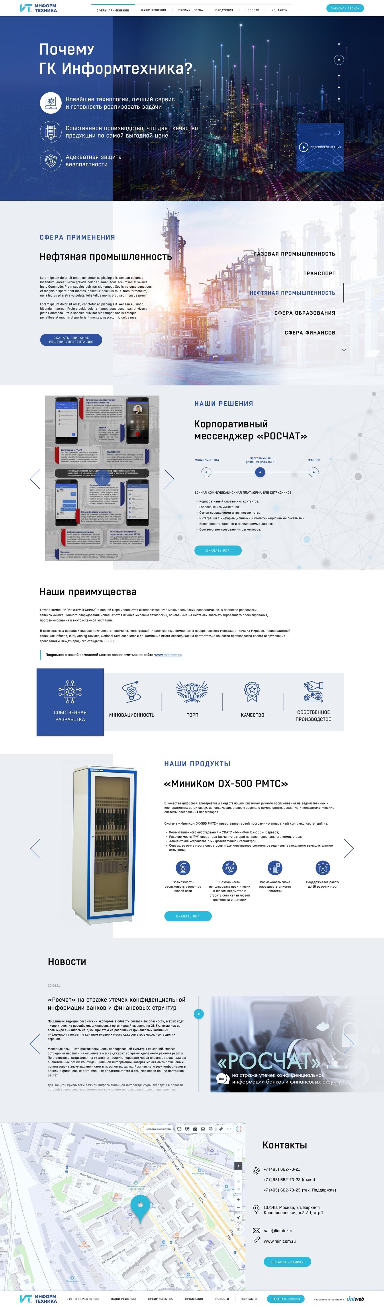 Команда “ЮниВеб” создала ресурс с лаконичным дизайном, который наглядно рассказывает и показывает важную информацию о продукте.