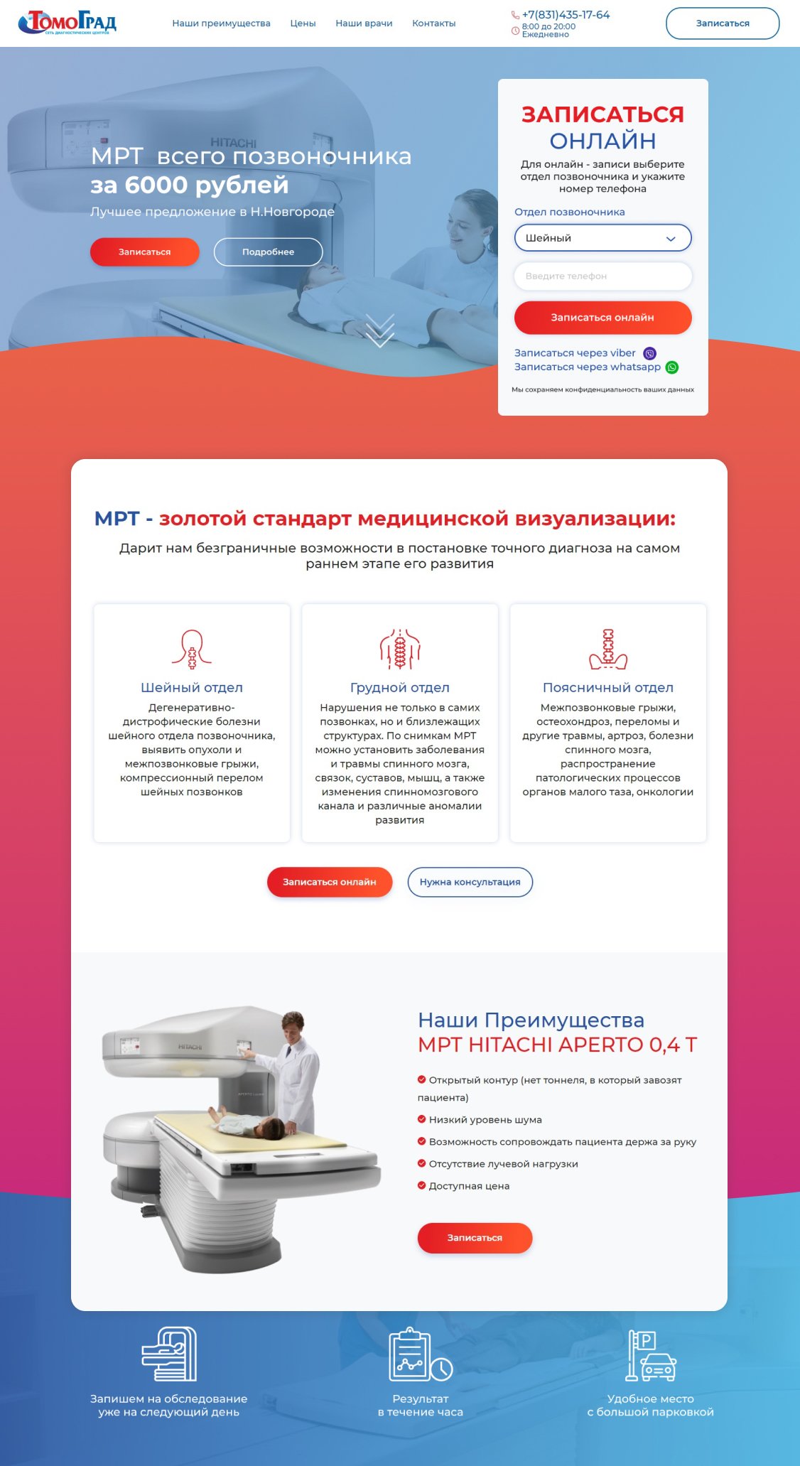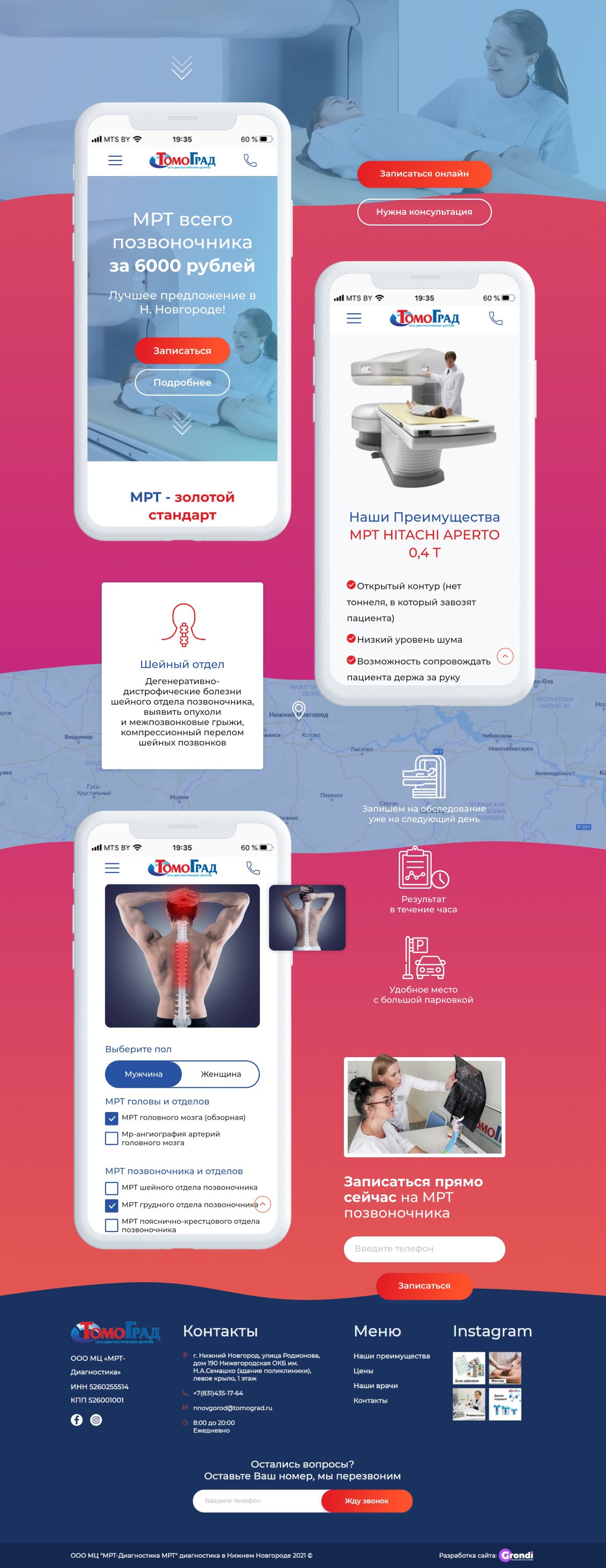 По требованиям и предпочтениям заказчика нужно было разработать лендинг, который бы продавал услугу МРТ в Нижнем Новгороде.