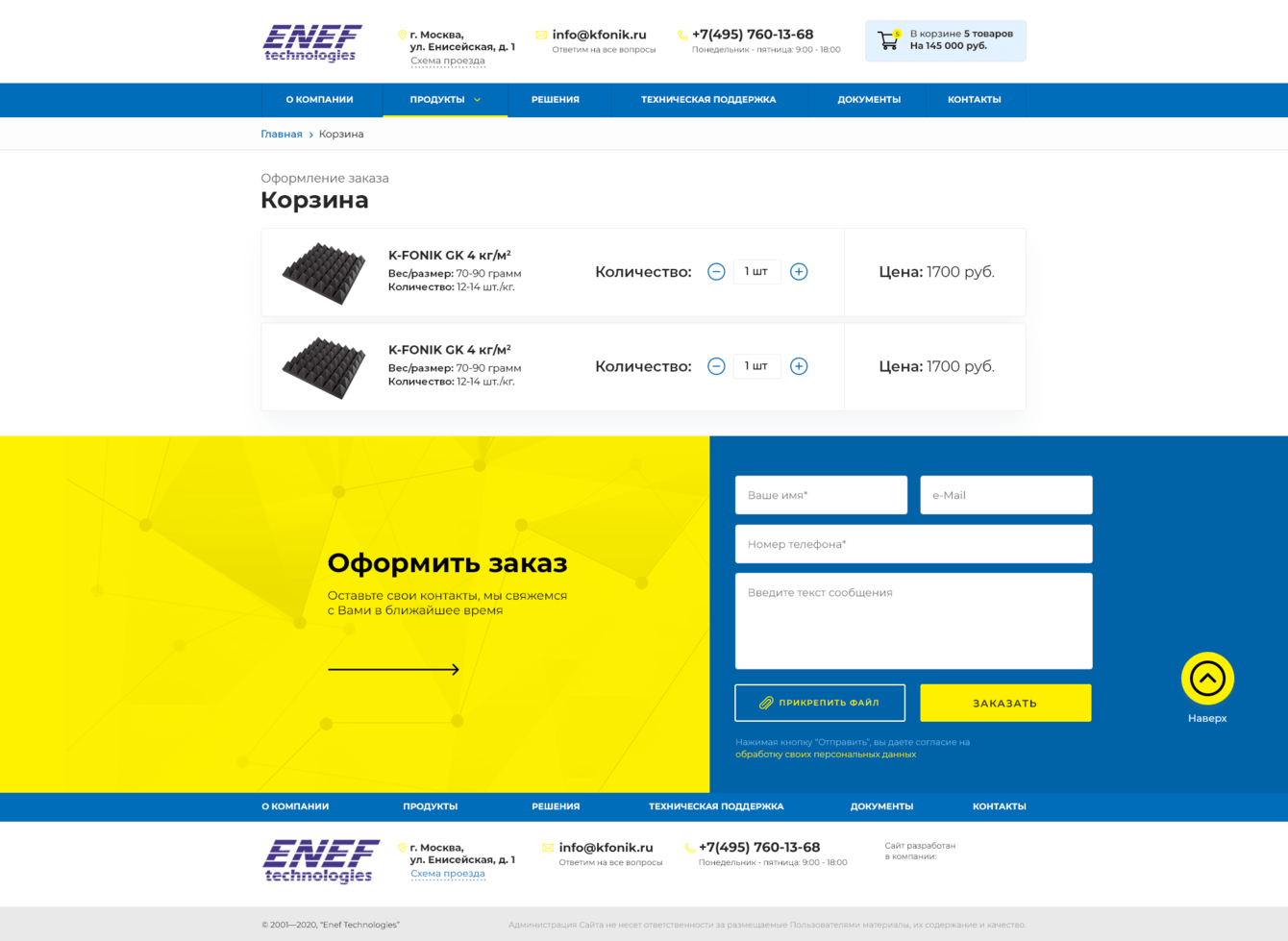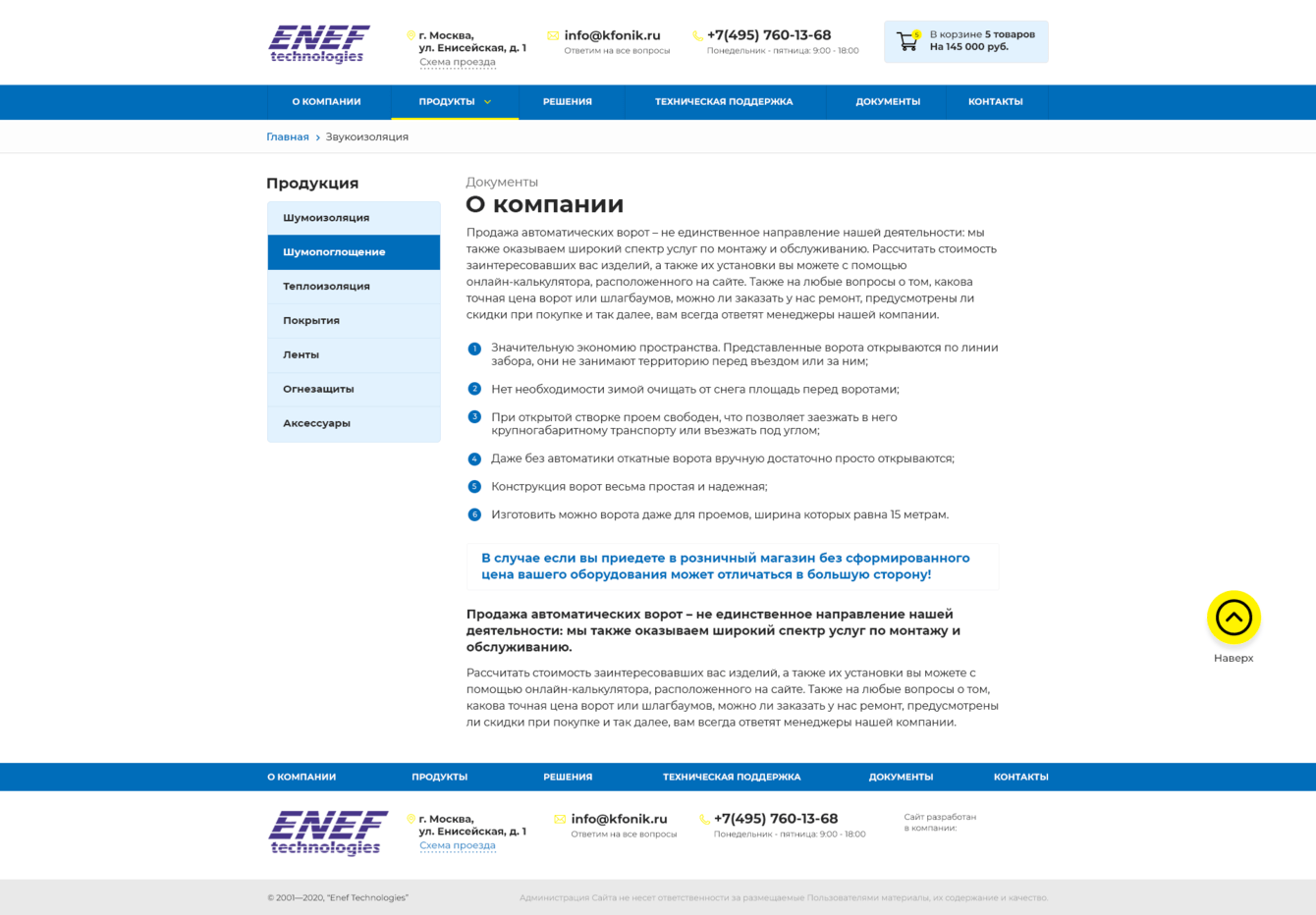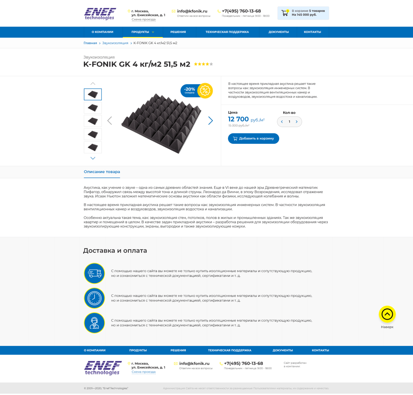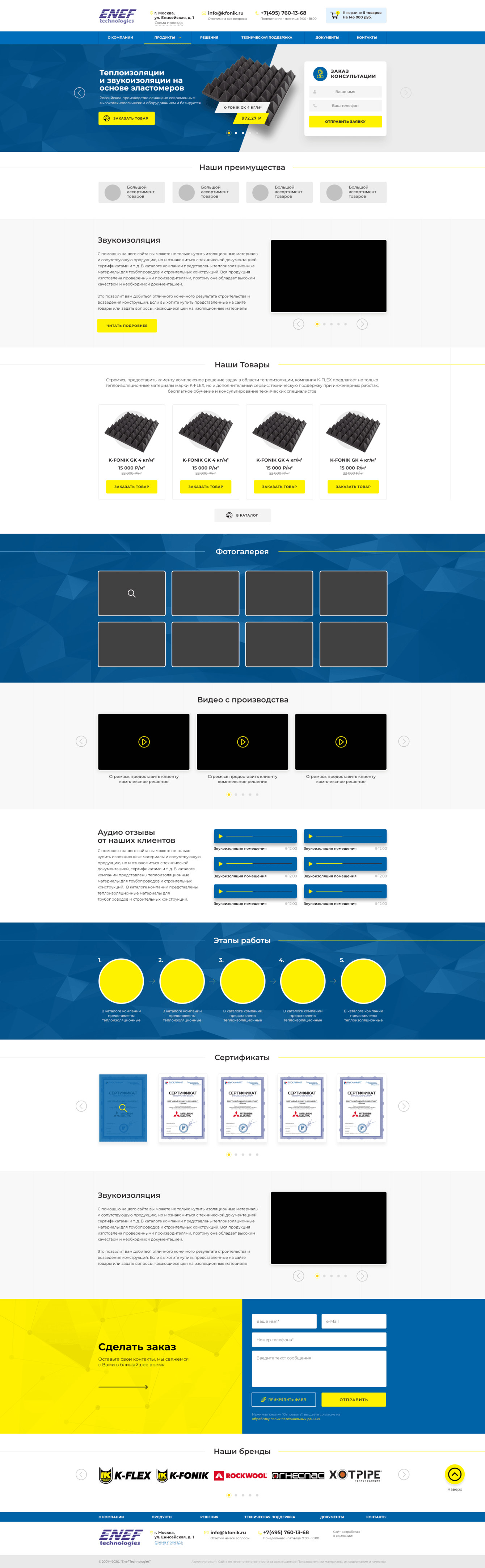 Разработка сайта для компании ООО «Энэф-Технолоджис» — официального дистрибьютора ведущего производителя технической звукоизоляции на основе вспененного каучука компании ООО «К-ФЛЕКС» (K-FLEX K-FONIK).